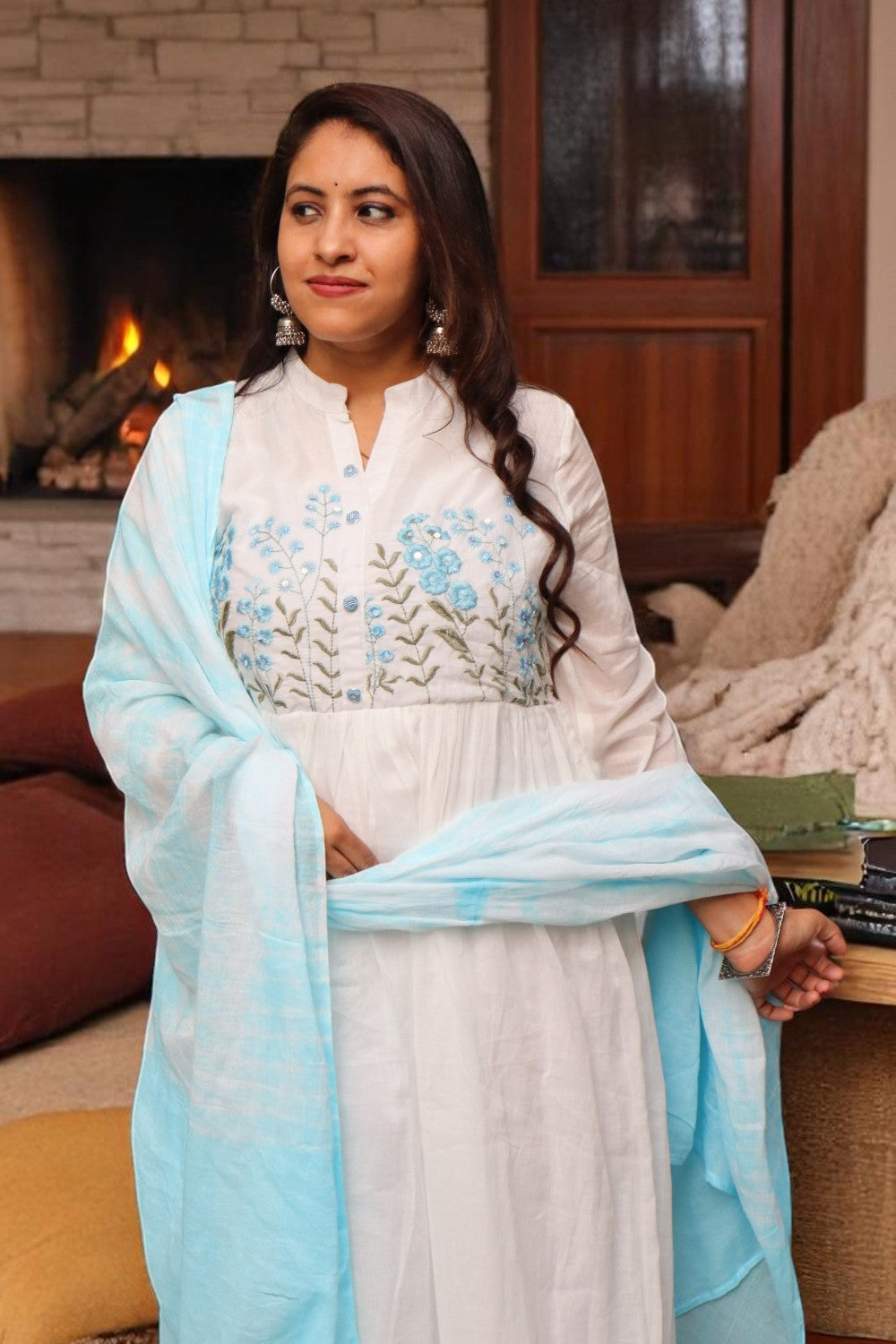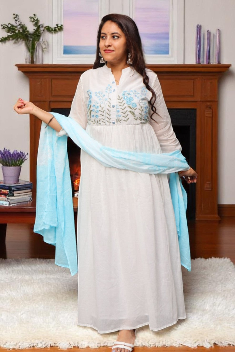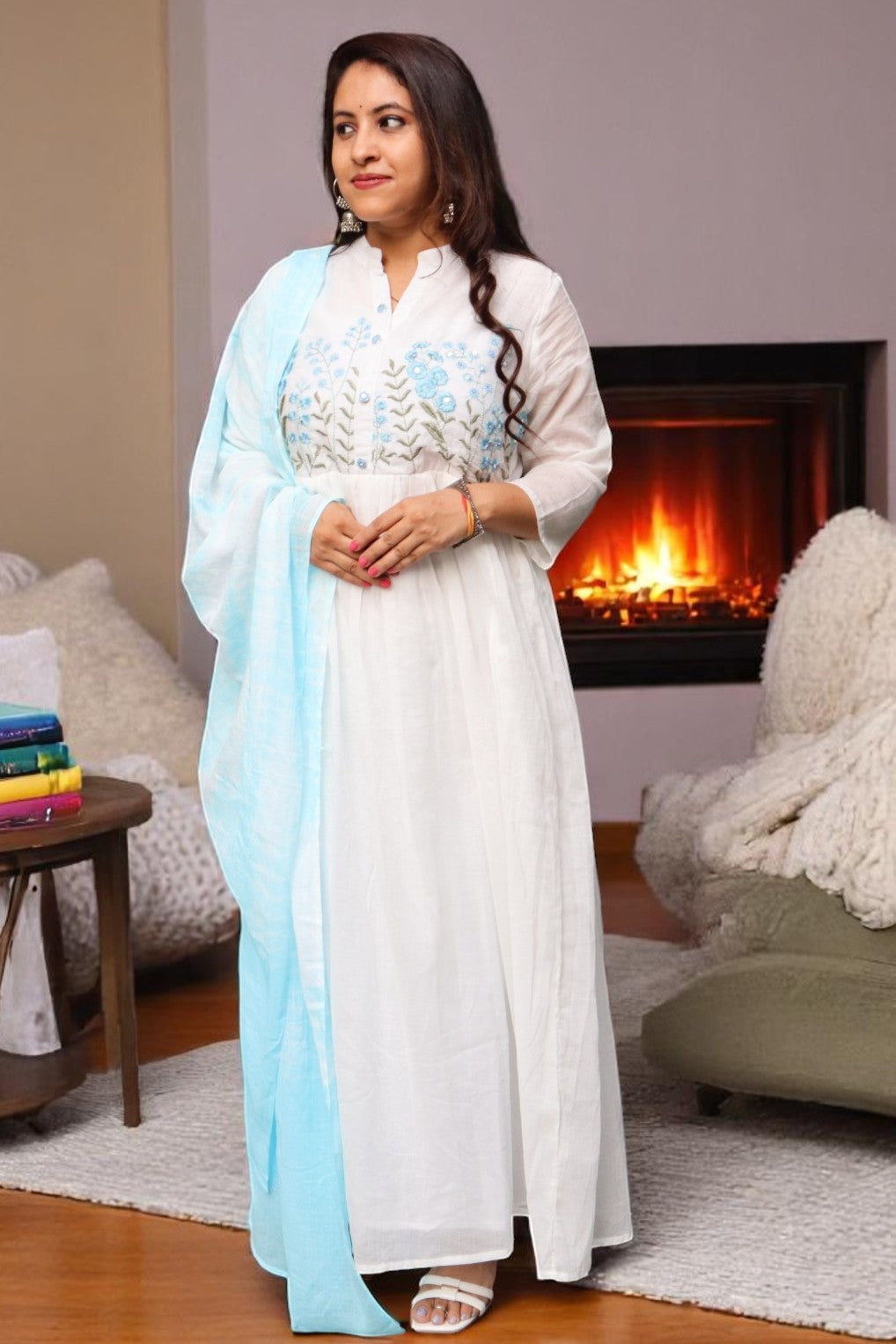ANE015 Designer White Color Mal Cotton Embroided 3 Pcs Suit