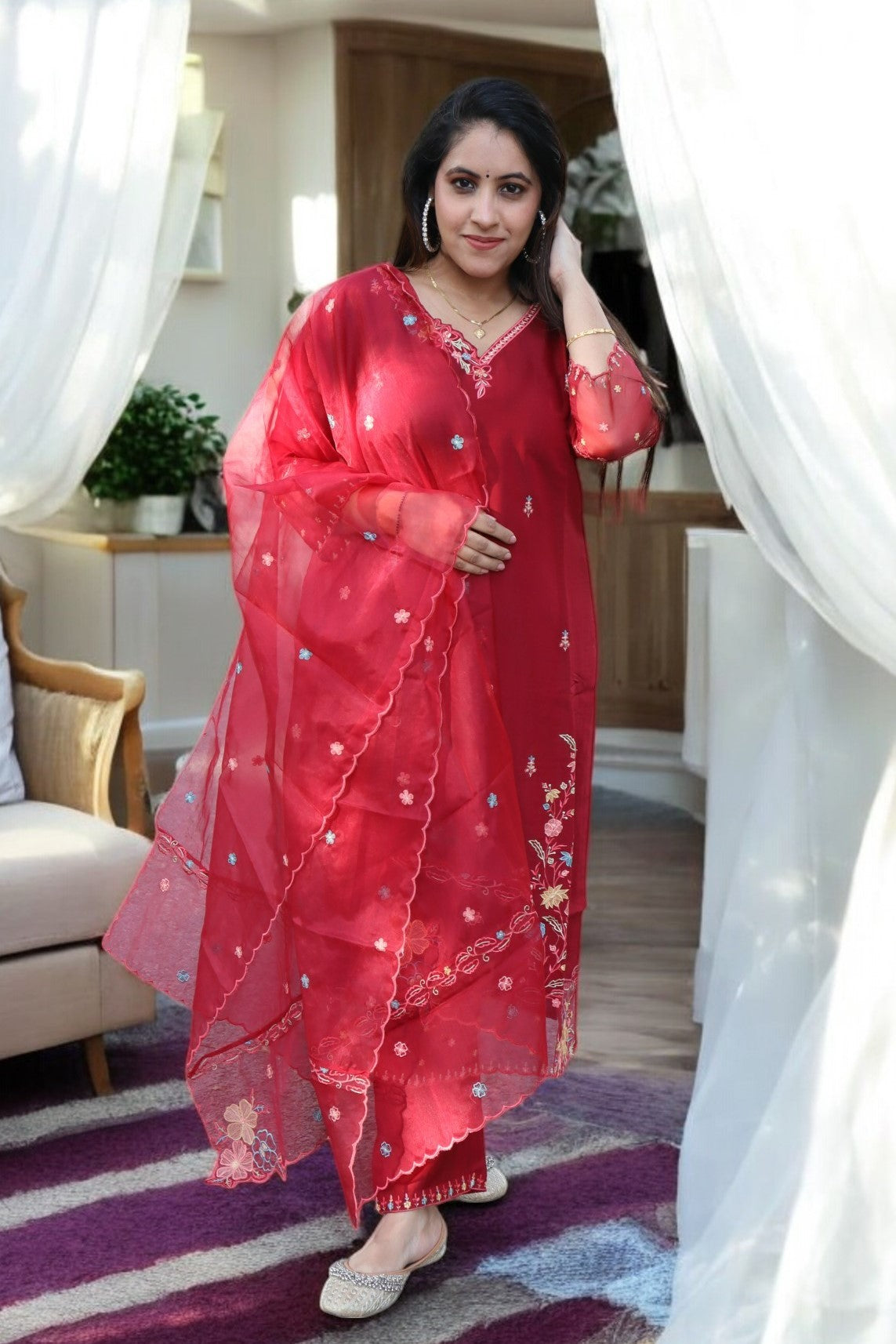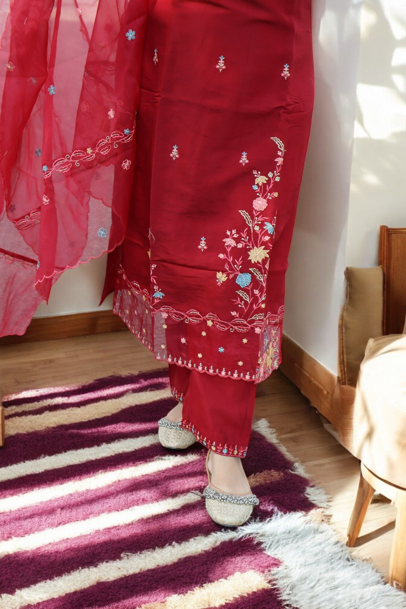 ISHI 503 Beautiful Maroon Color Premium Muslin Embroided 3 Pcs Suit