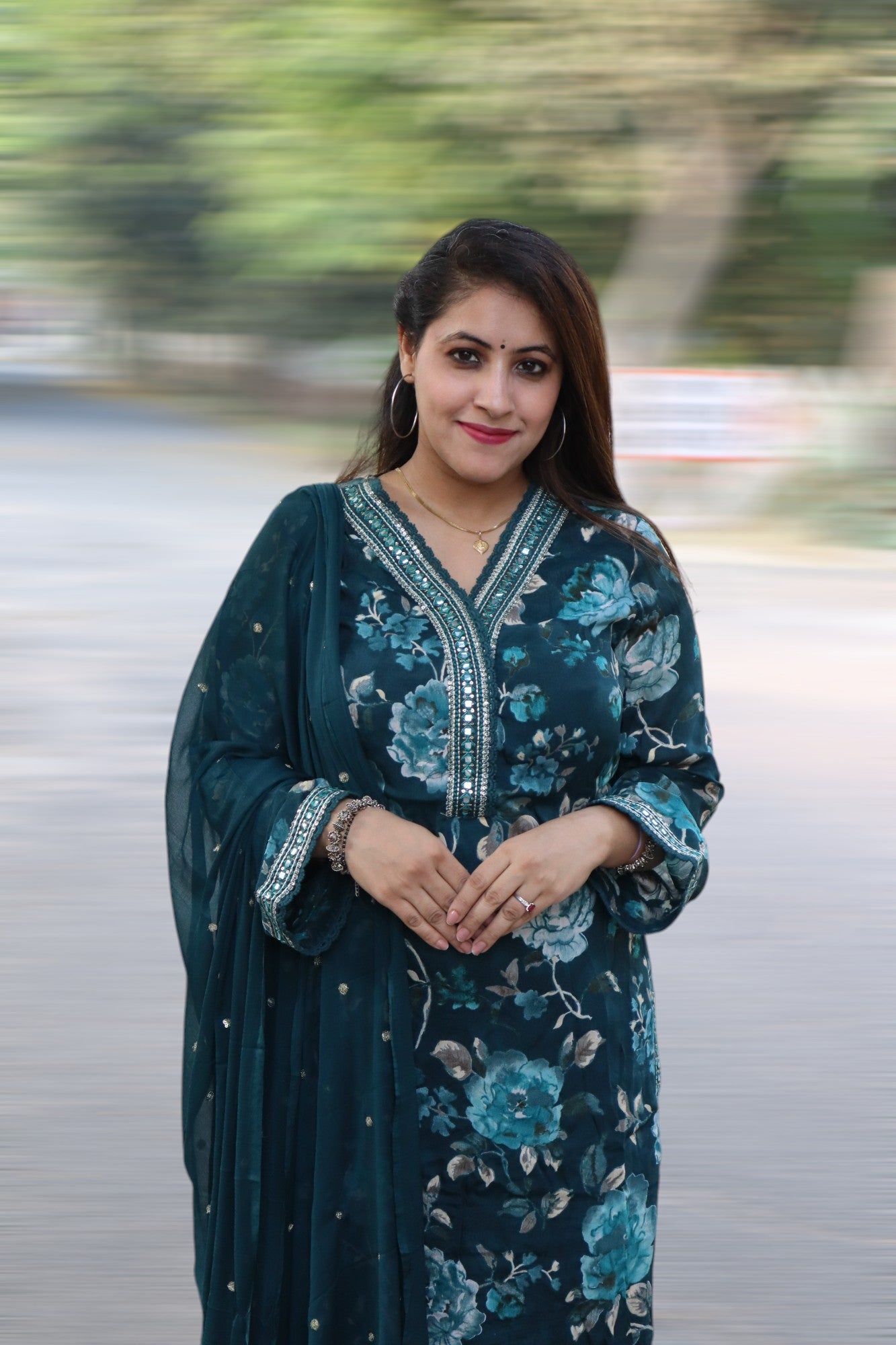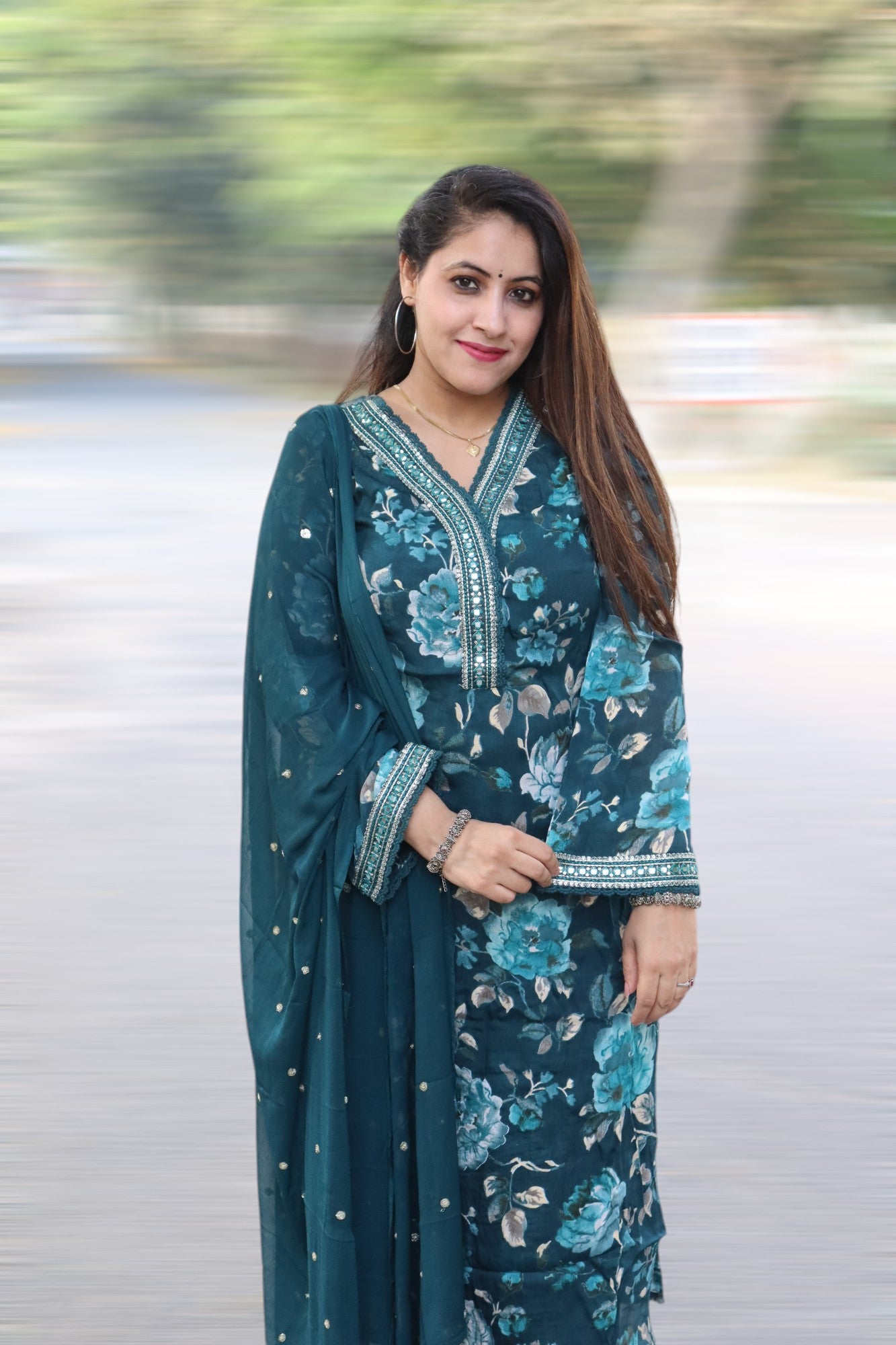 ISHI 521 Beautiful Teal Green Color Premium Chinnon 3 Pcs Suit