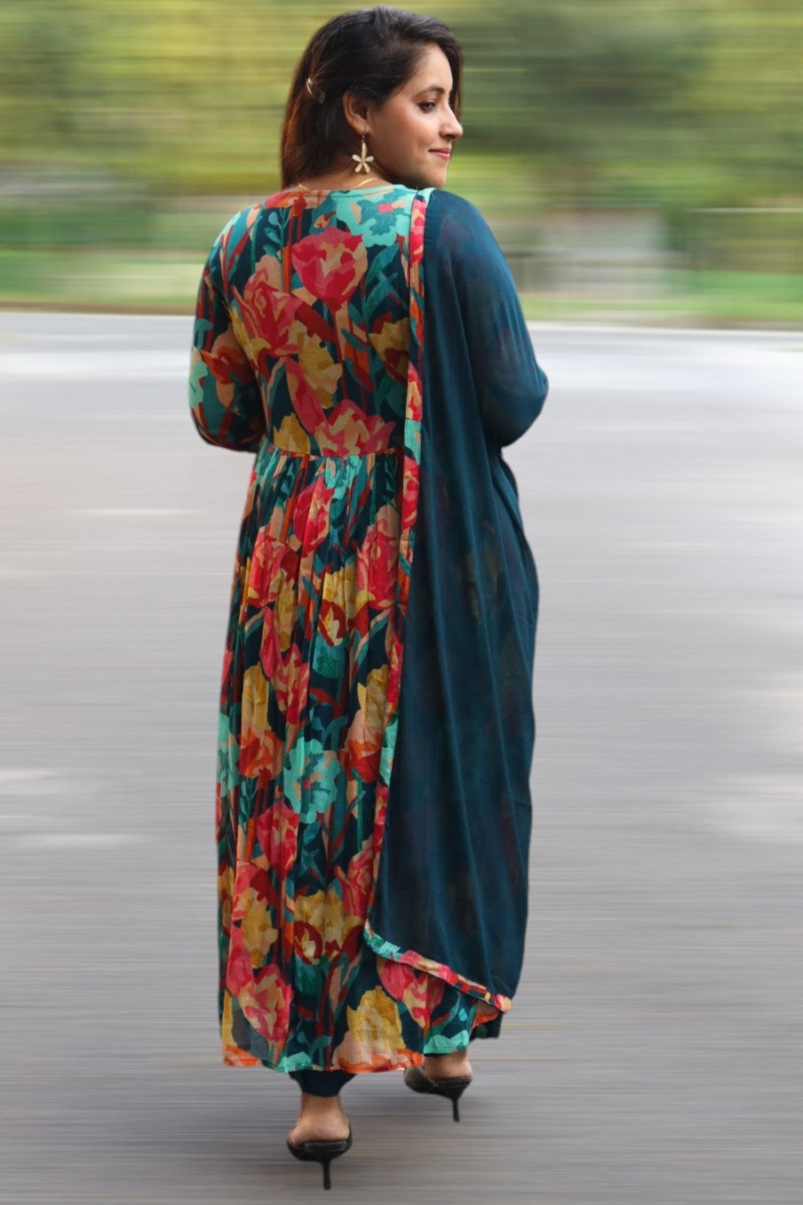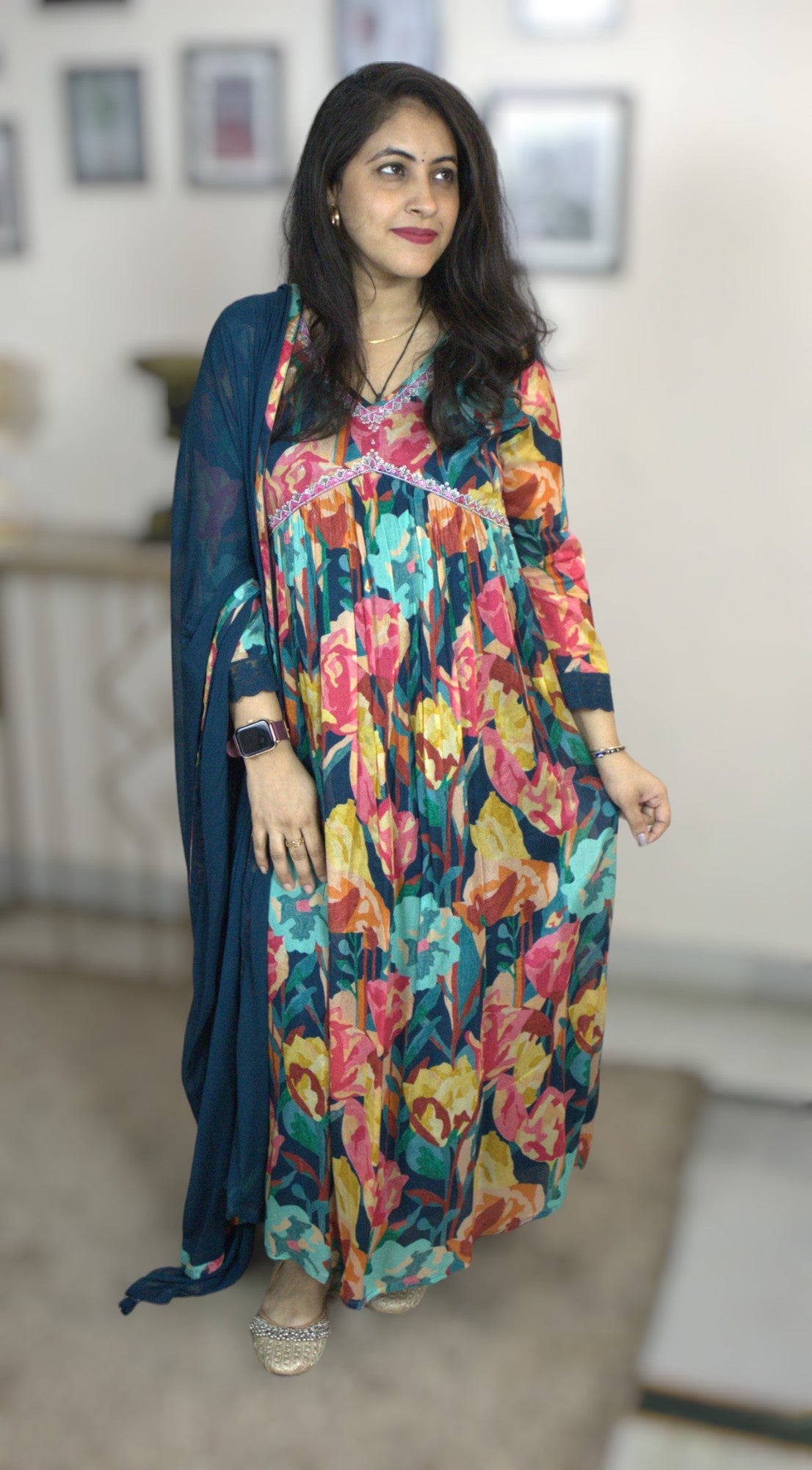 ISHI 529 Beautiful Multi Color Chinnon Alia Cut 3 Pcs Suit