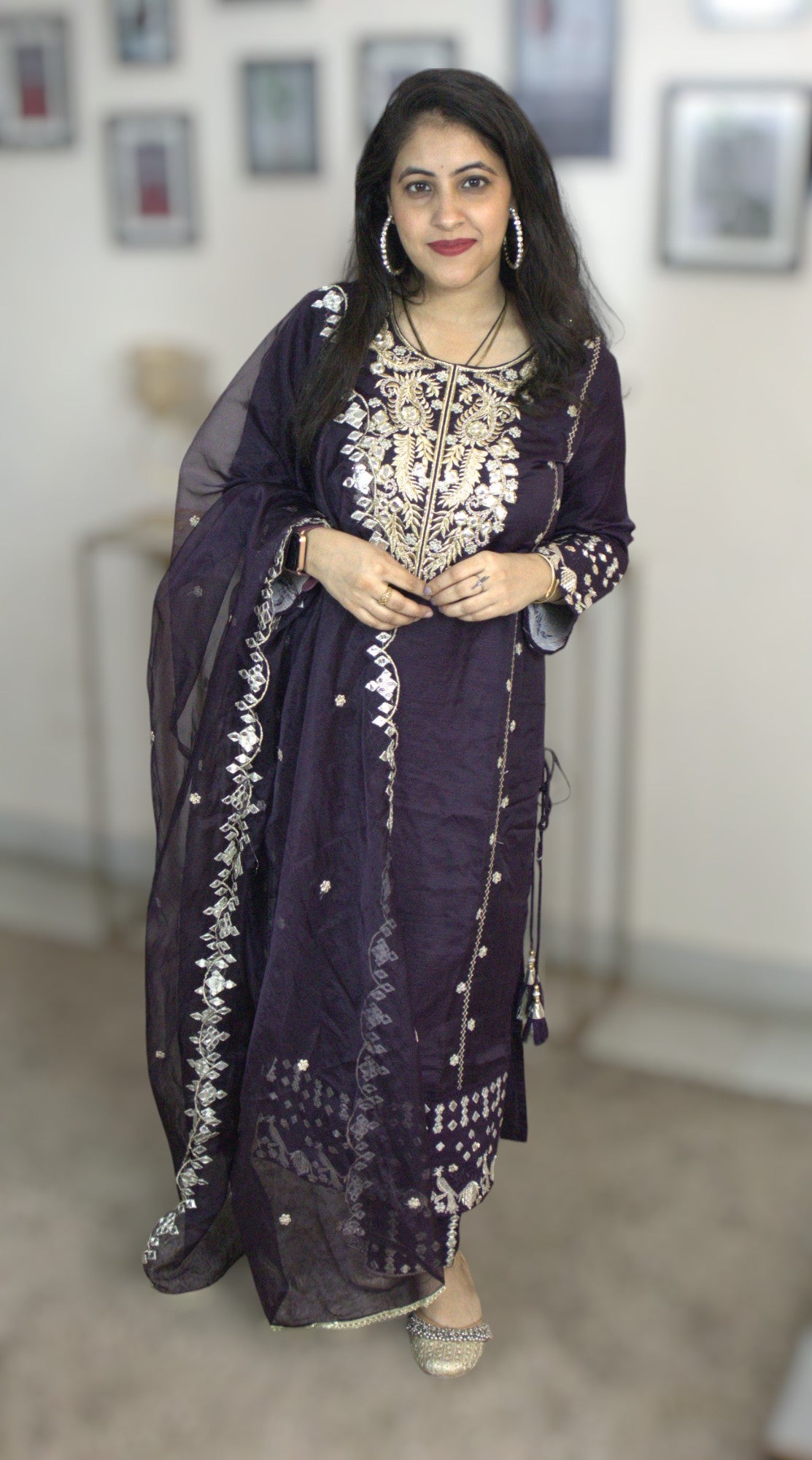 ISHI 531 Beautiful Dark Voilet Color Muslin Embroided Partywear Straight 3 Pcs Suit
