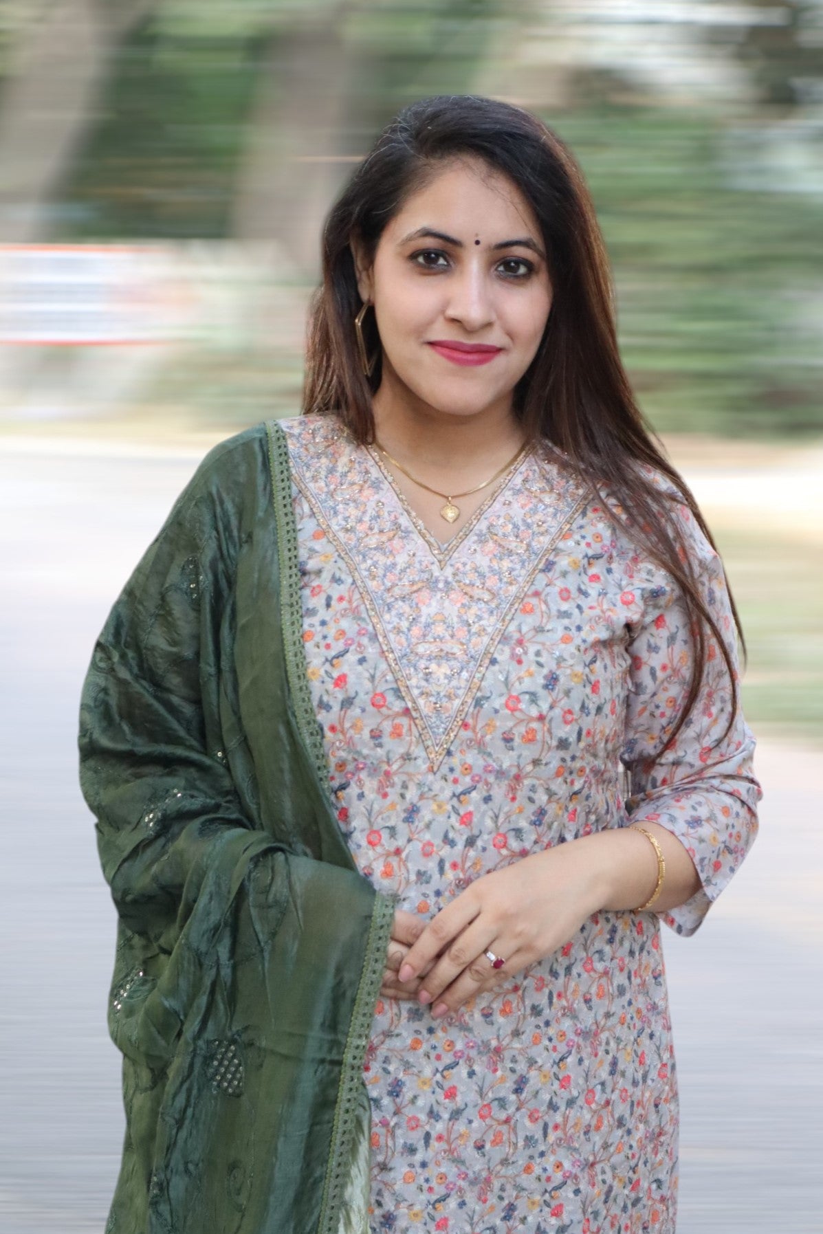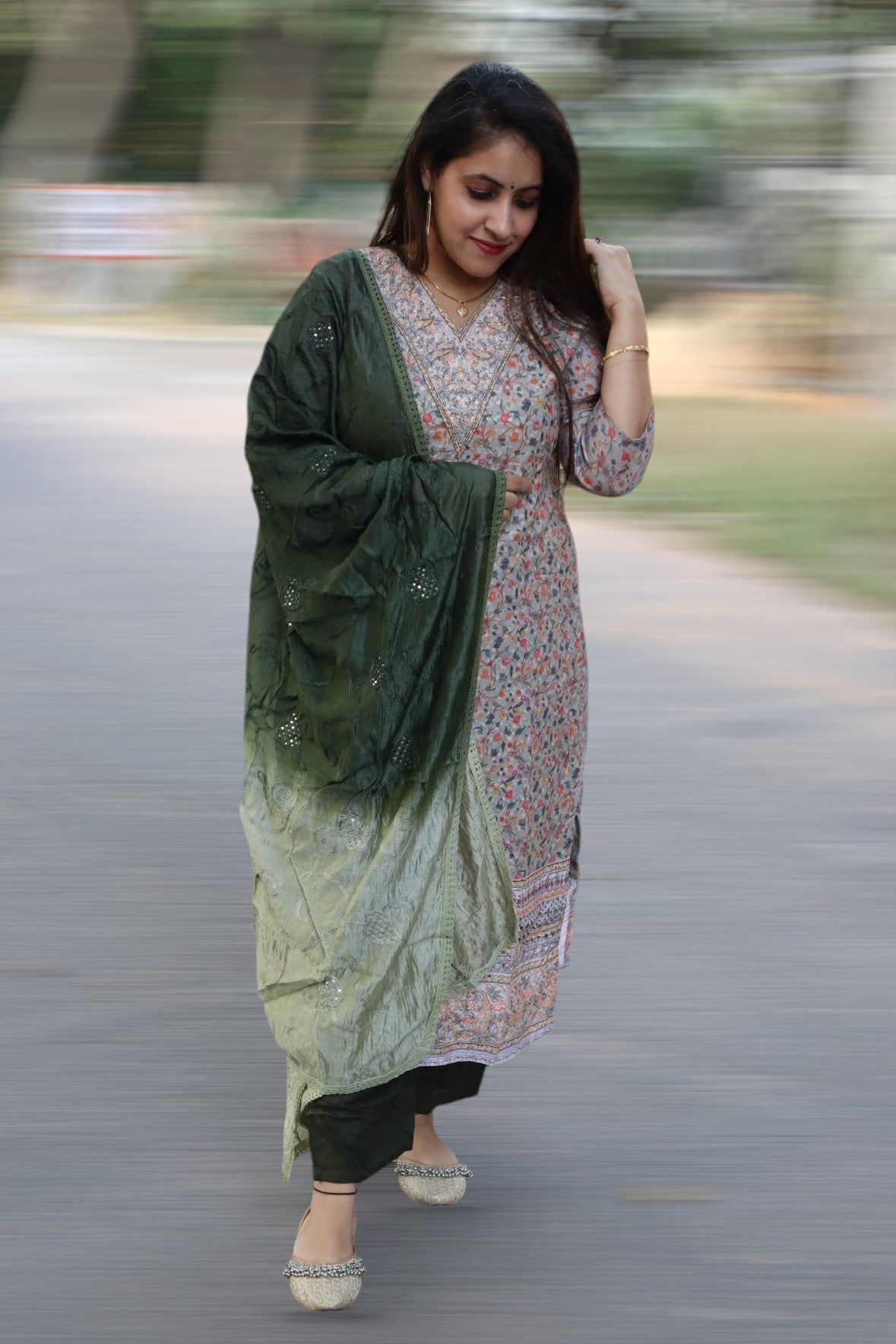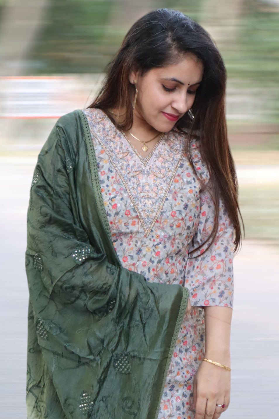 ISHI 546 Beautiful Green Color Schffli Cotton Straight 3 Pcs Suit