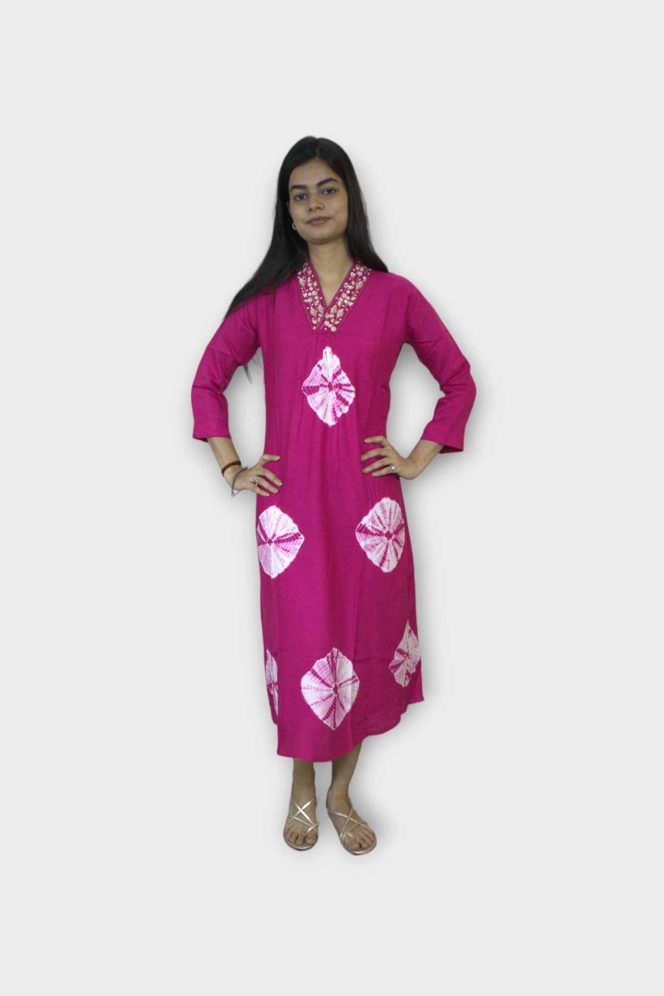 ISHI 586 Beautiful Pink Color Cotton A Line Dress
