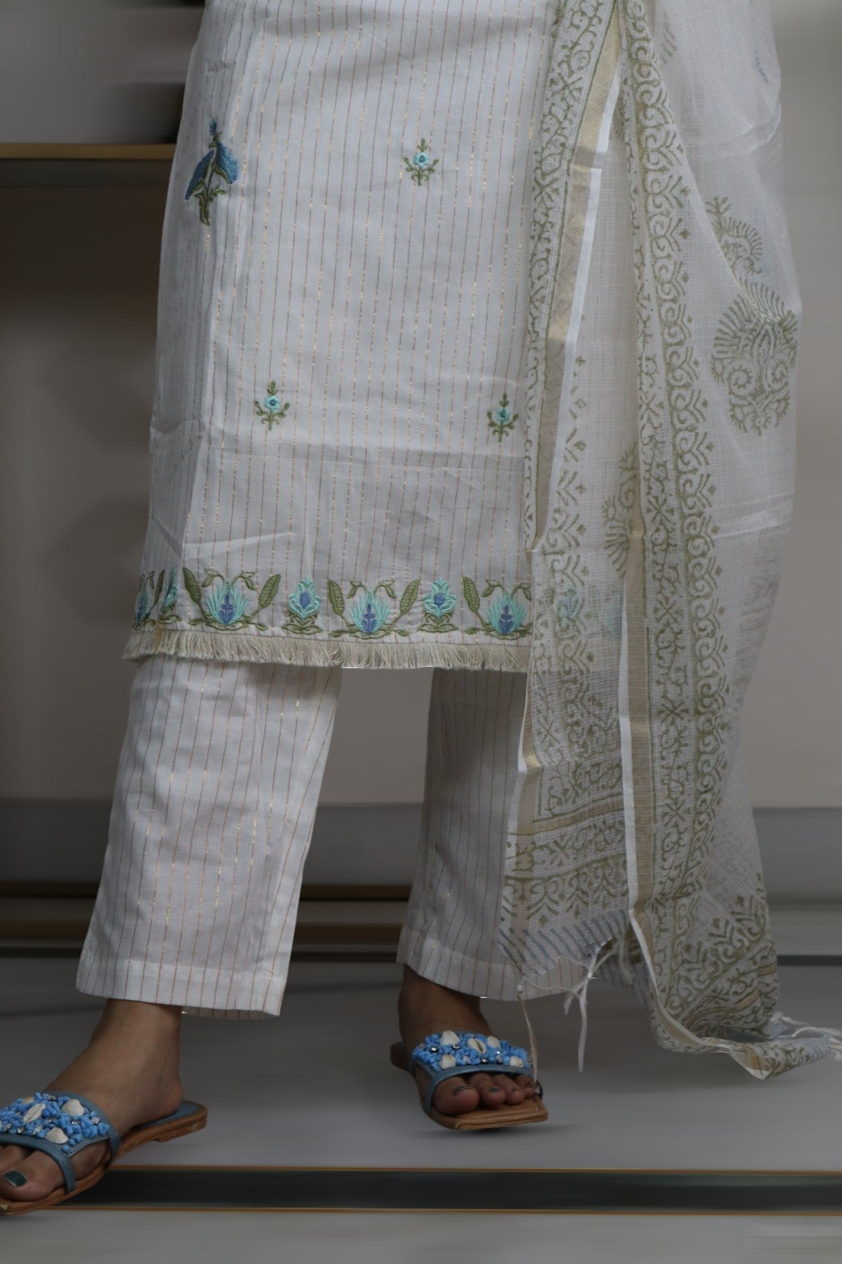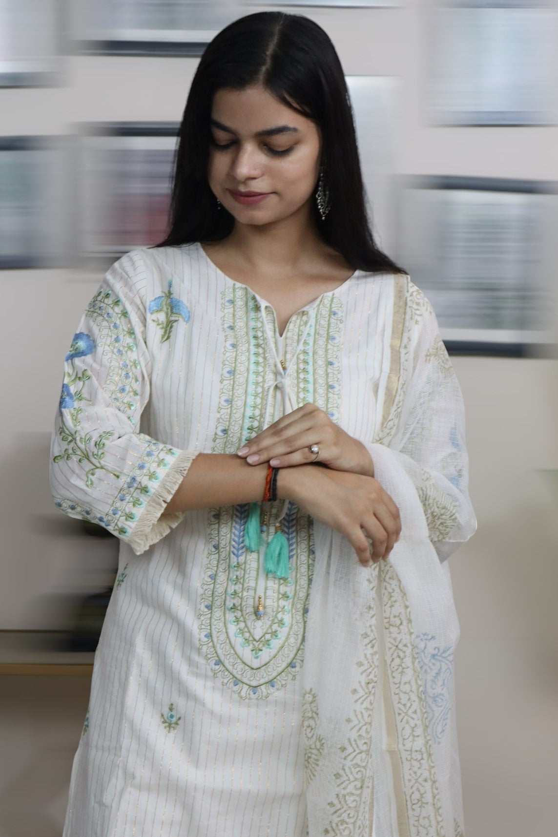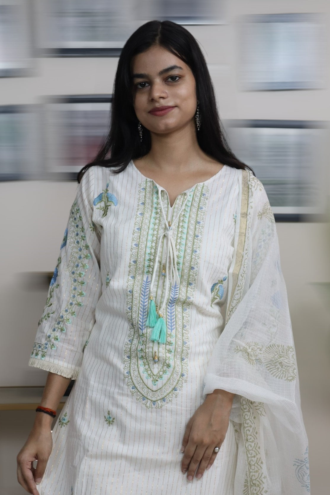ISHI 665 Beautiful Off White Color Embroided Premium Cotton Designer 3 Pcs Suit