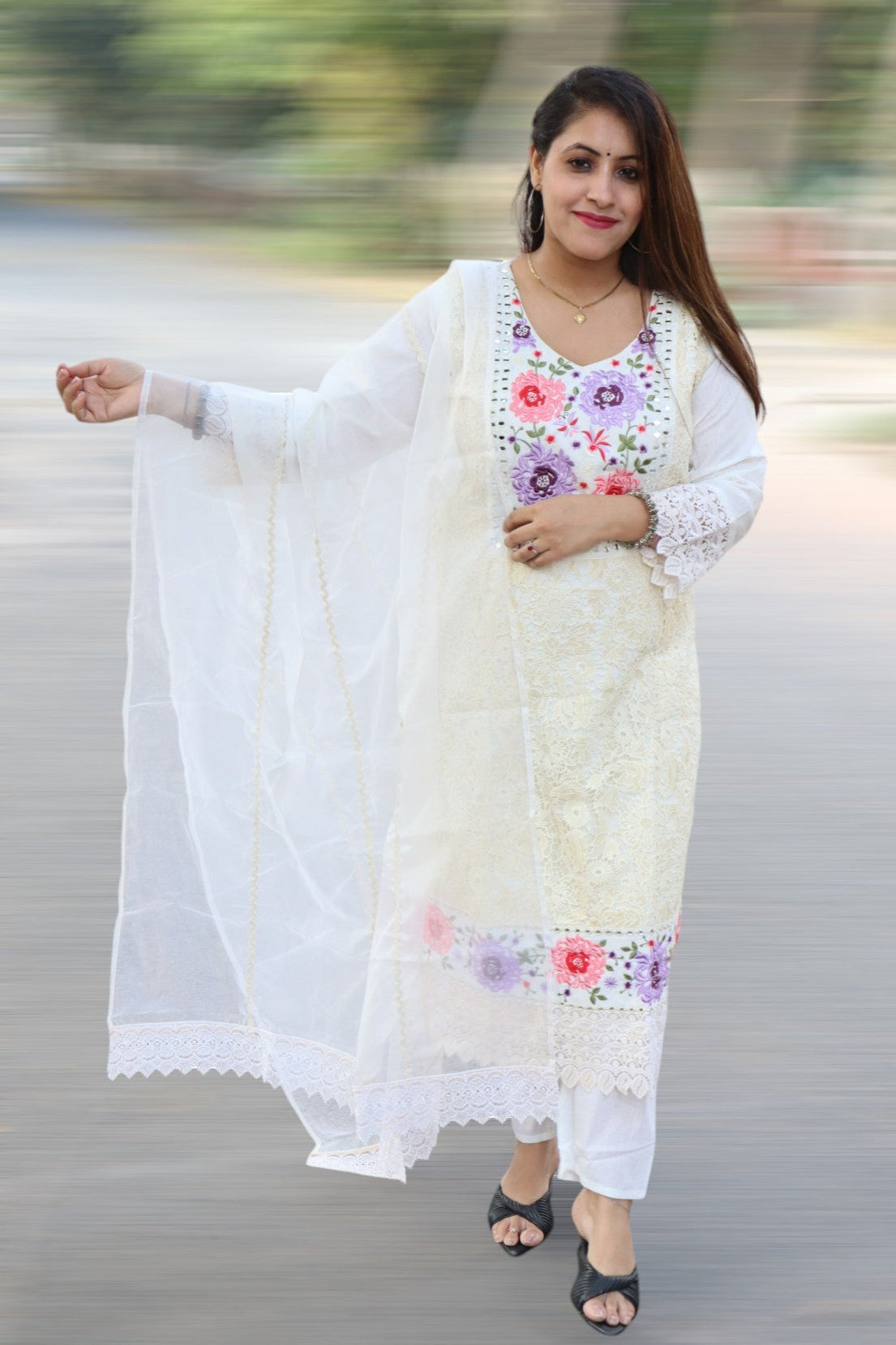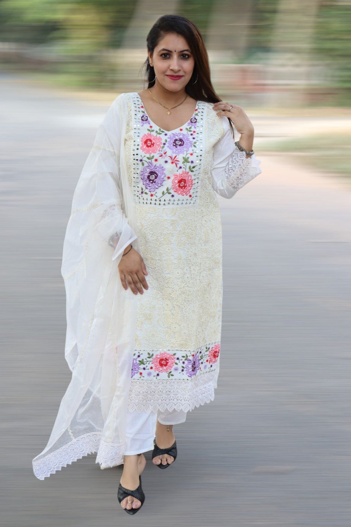 ISHI 669 Stunning Off White Color Premium cotton Embroided 3 Pcs Suit