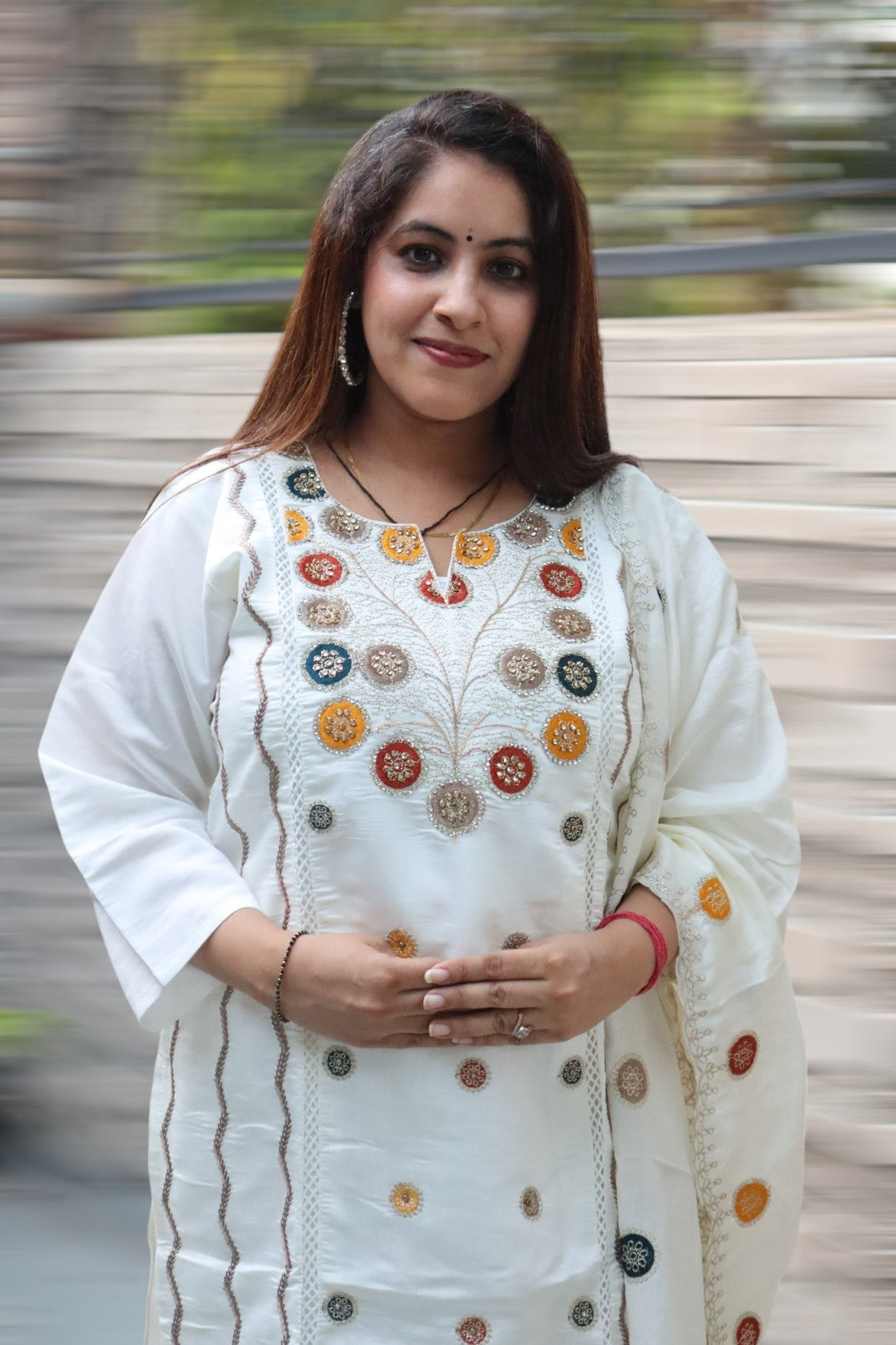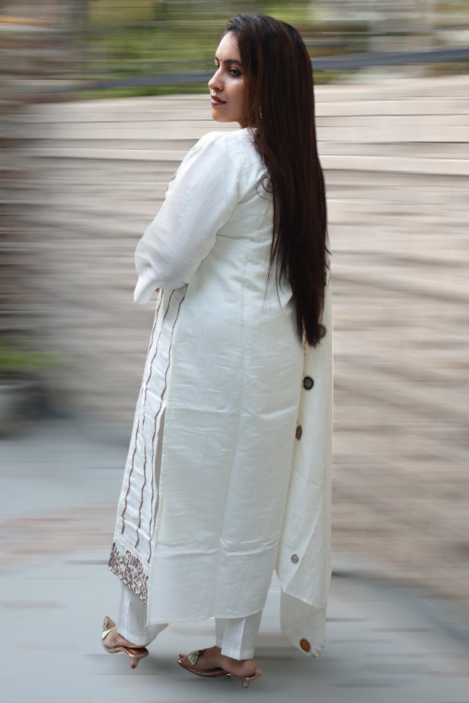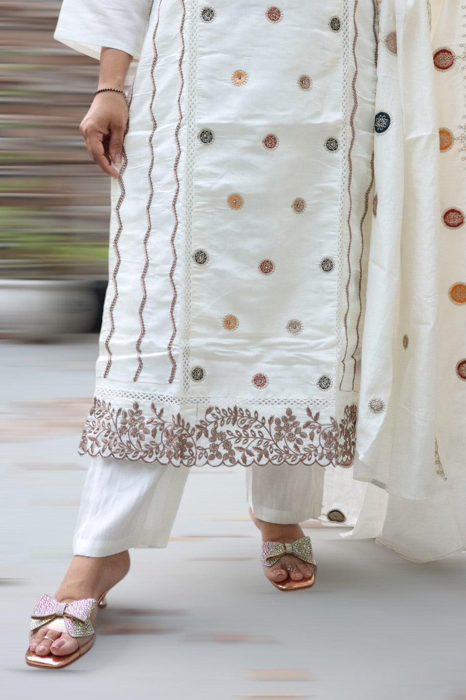 ISHI 729 Beautiful Designer Off White Color Embroided Muslin Straight 3 Pcs Suit