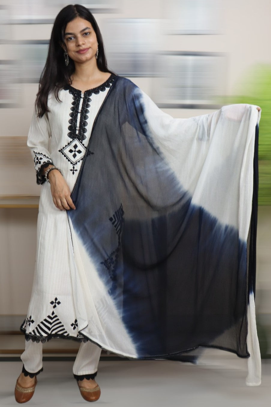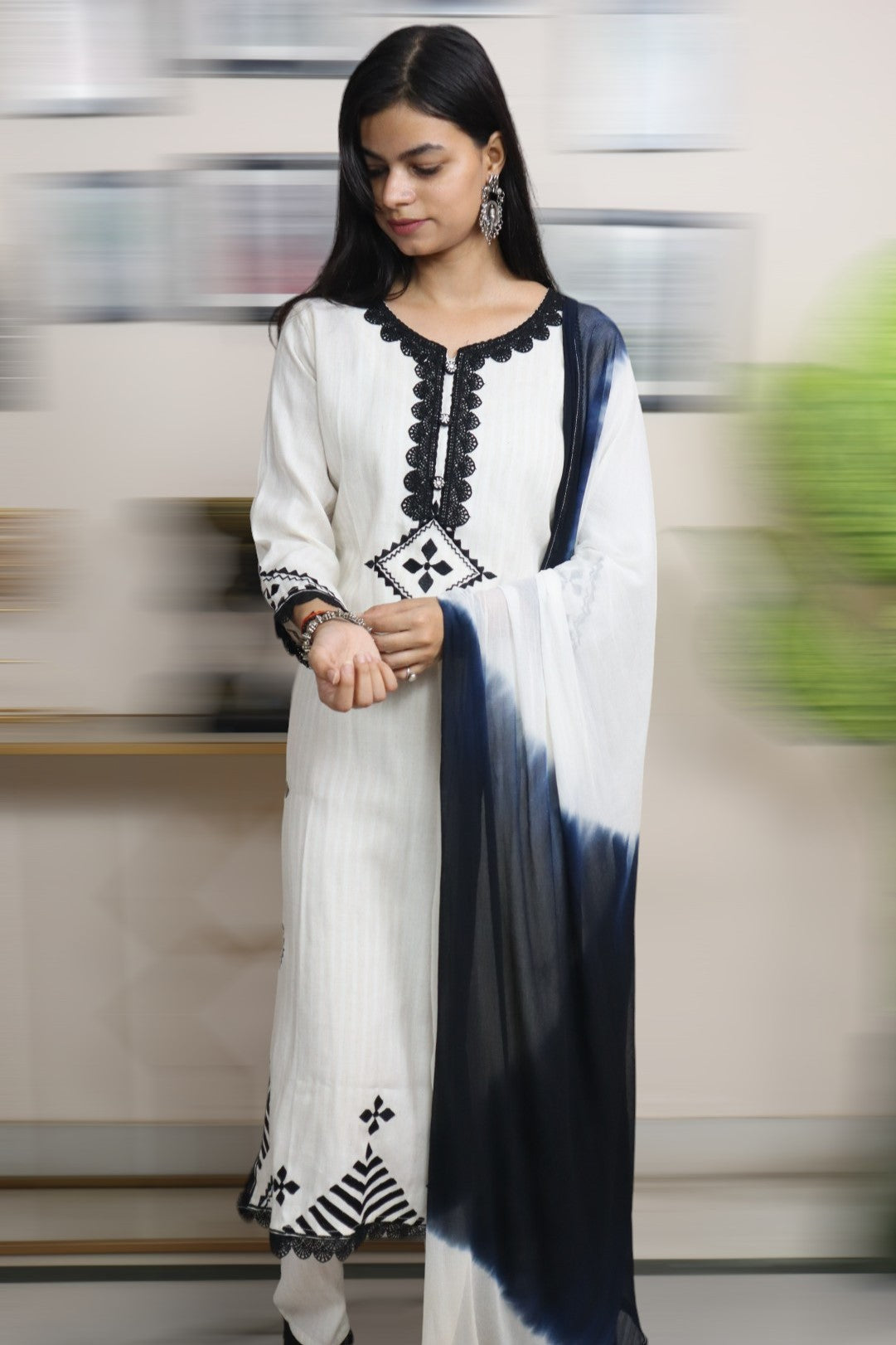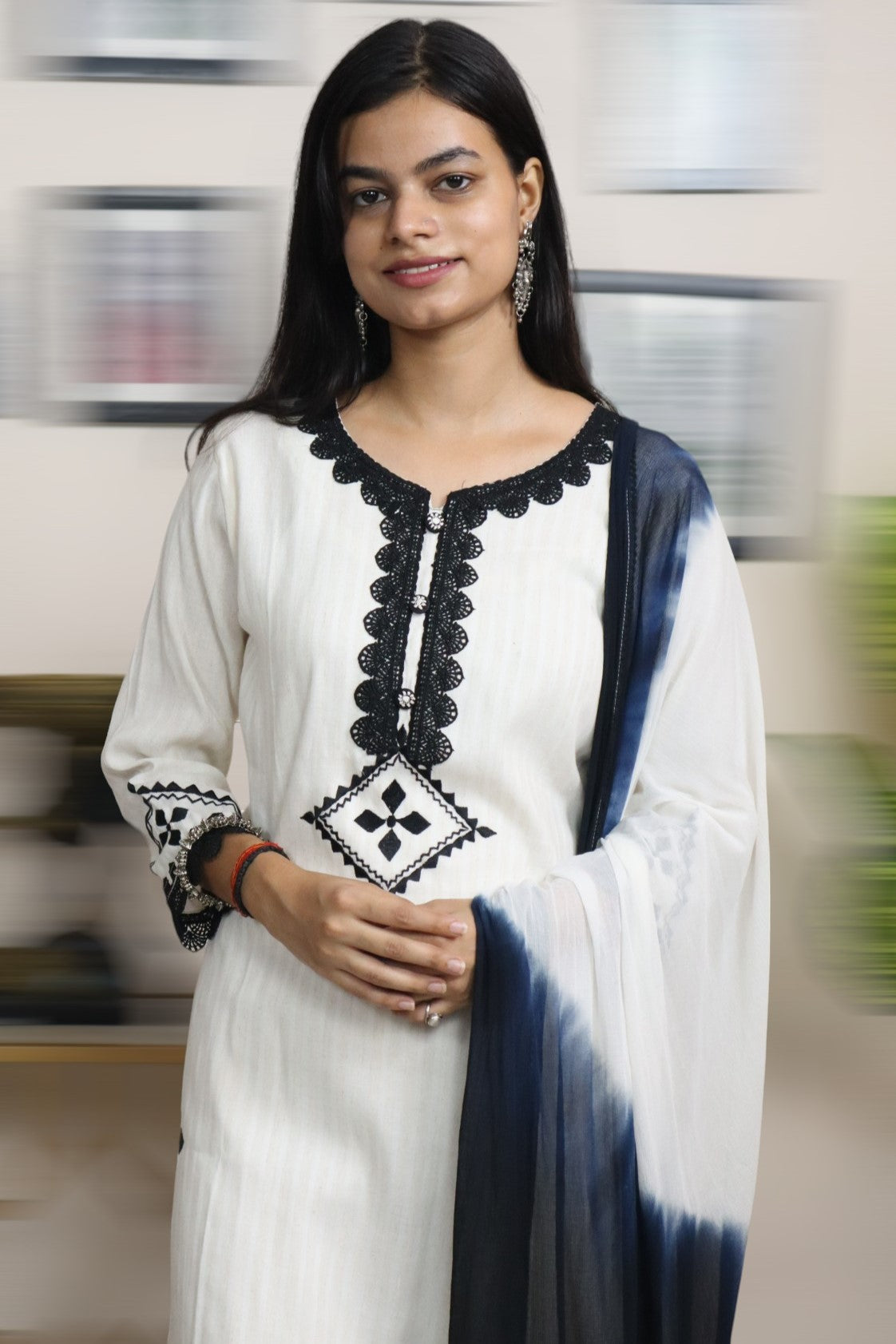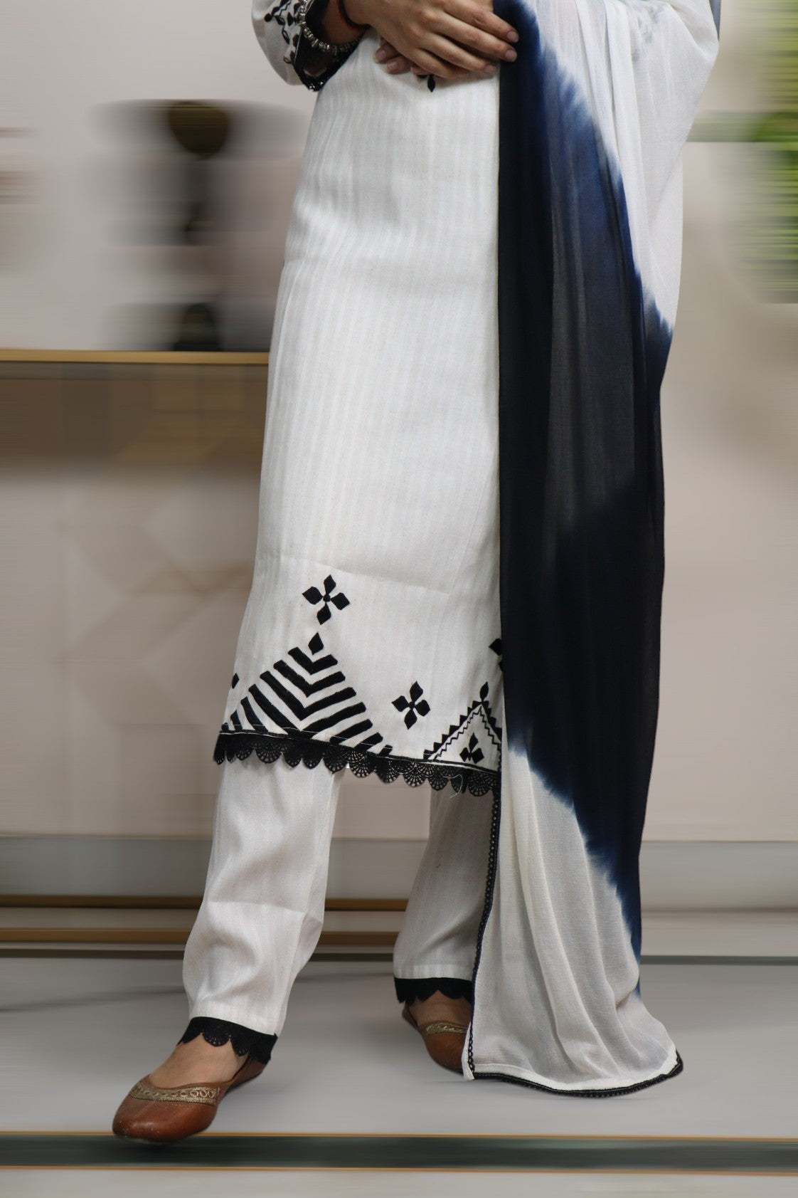 ISHI 810 Beautiful Black & White Color Cotton Embroidery Work Straight 3 Pcs Suit