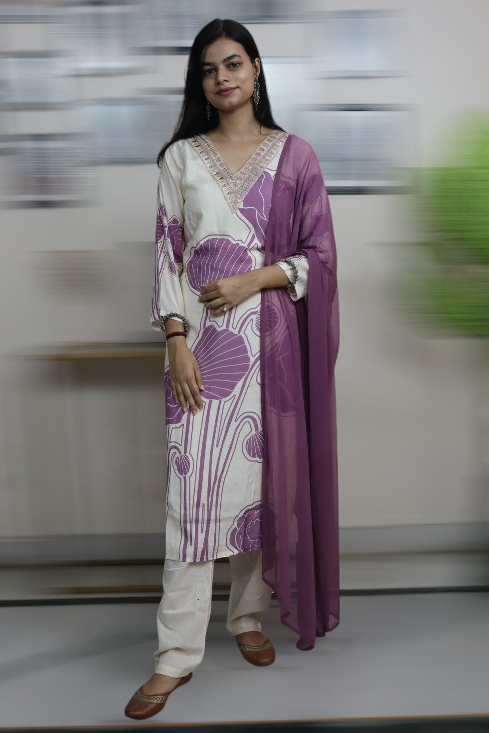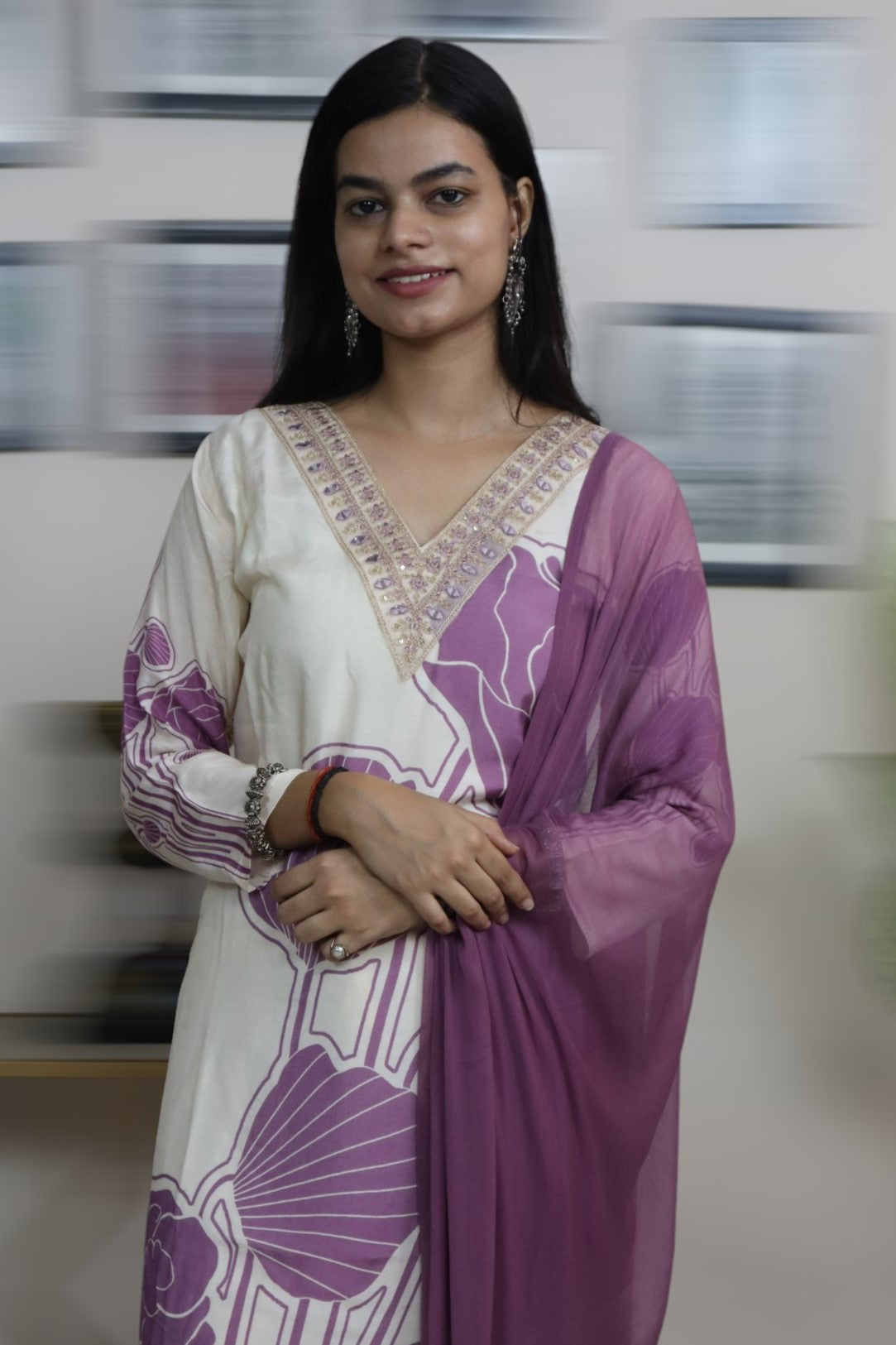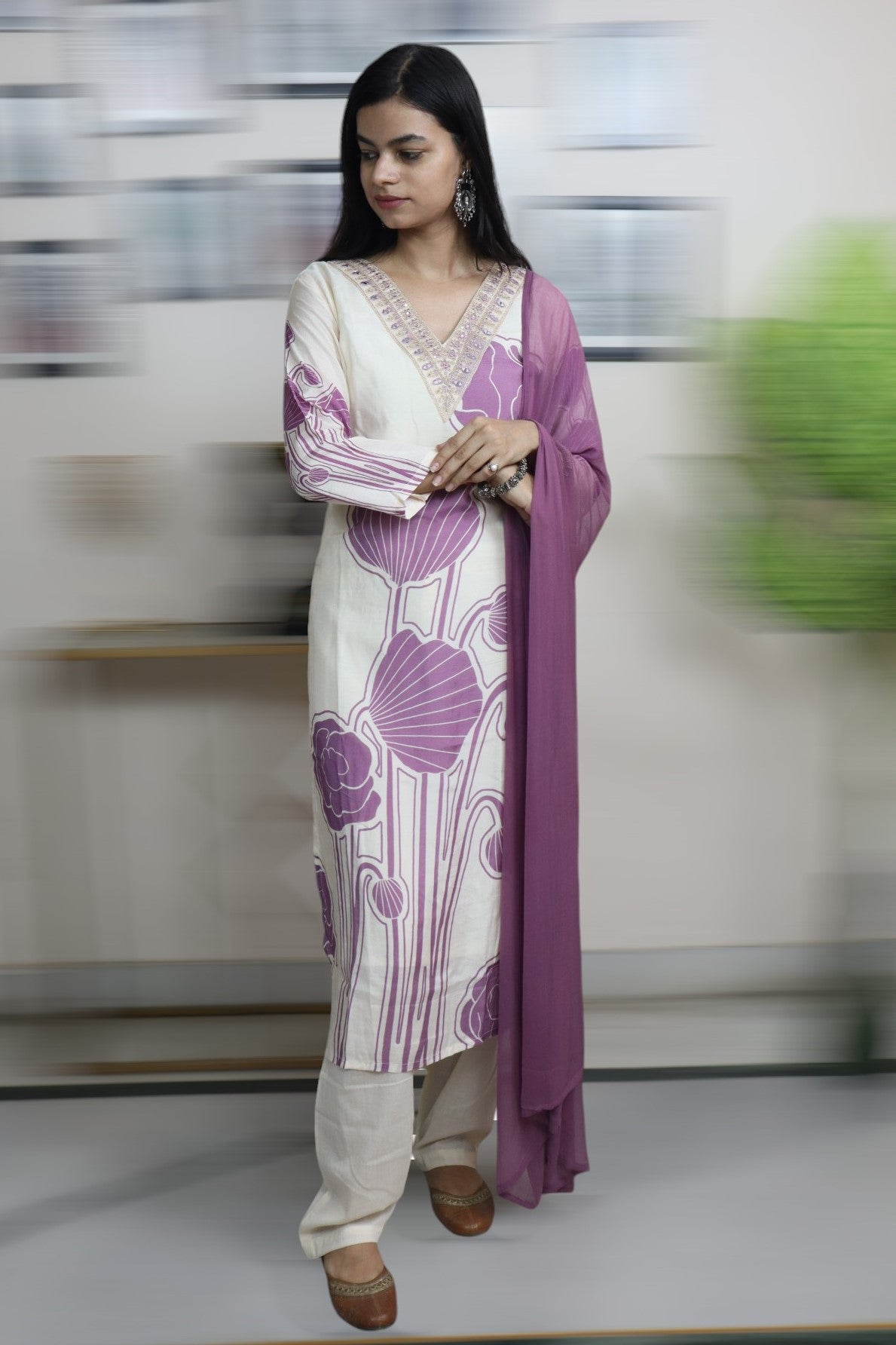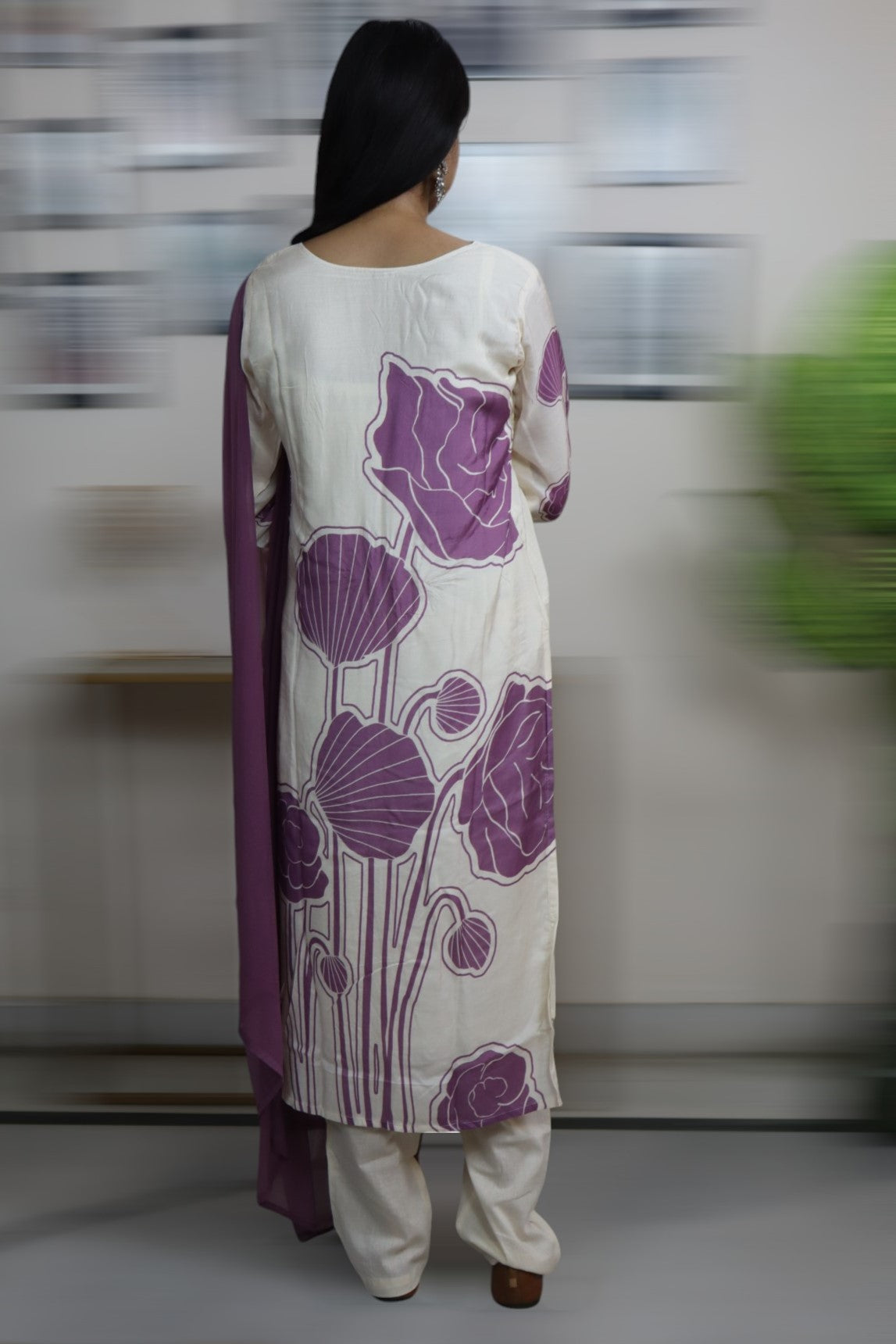 ISHI 837 Beautiful Off White Color Muslin Floral Printed 3 Pcs Suit