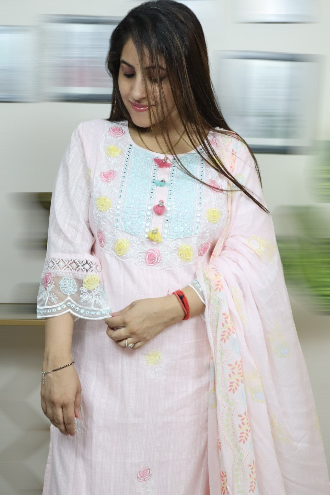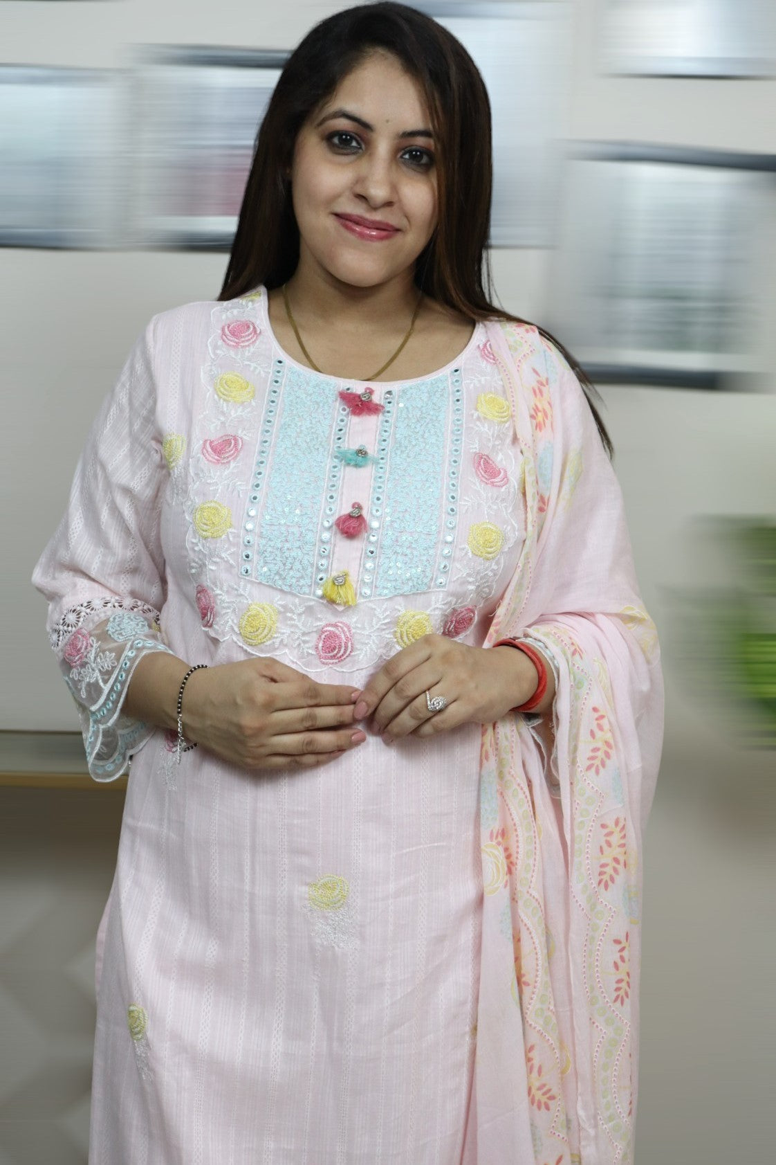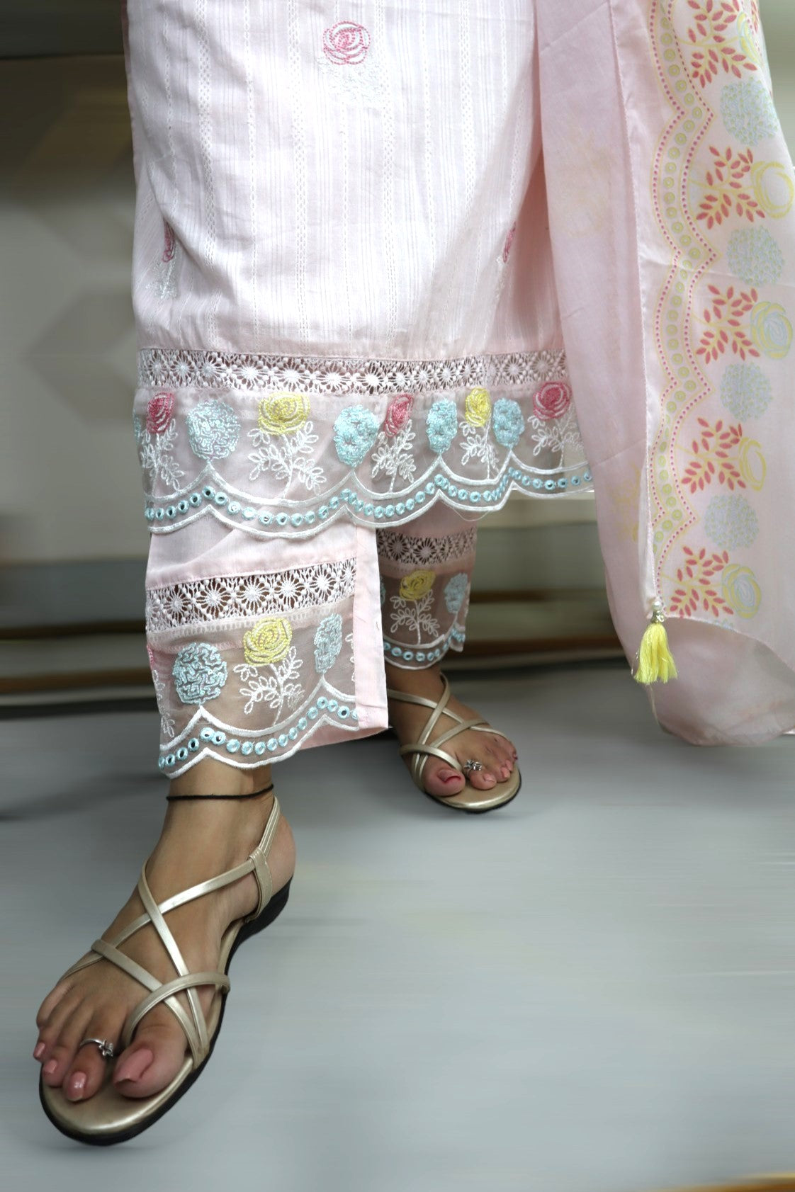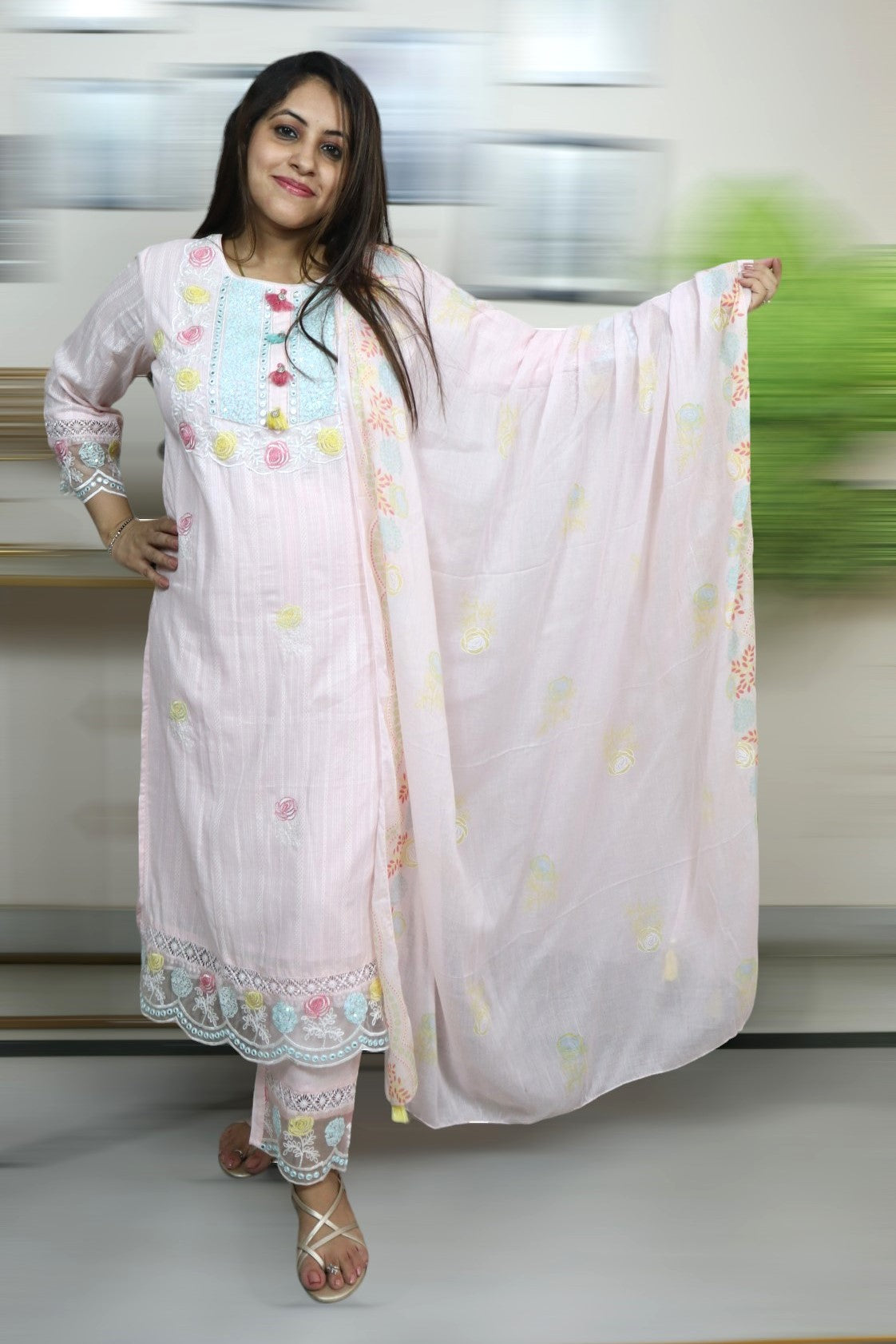 ISHI 849 Beautiful Designer Baby Pink Color Mal Cotton Embroidery Work 3 Pcs Suit