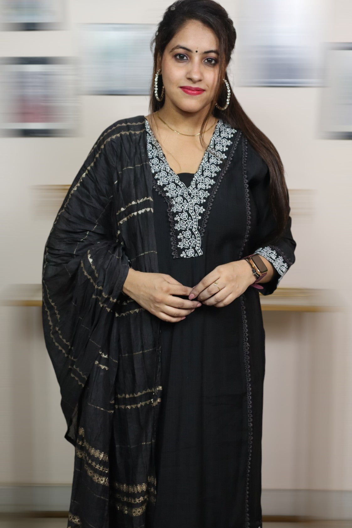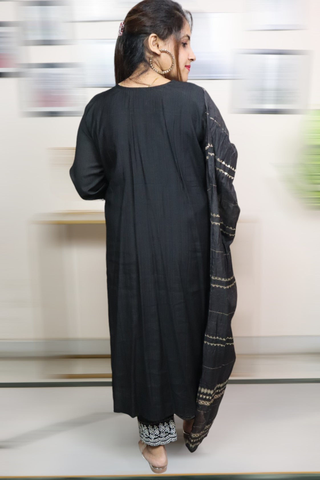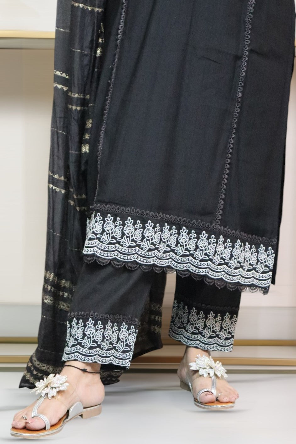 ISHI 858 Beautiful Designer Black Vatican Silk Fabric Pakistani 3 Pcs Suit