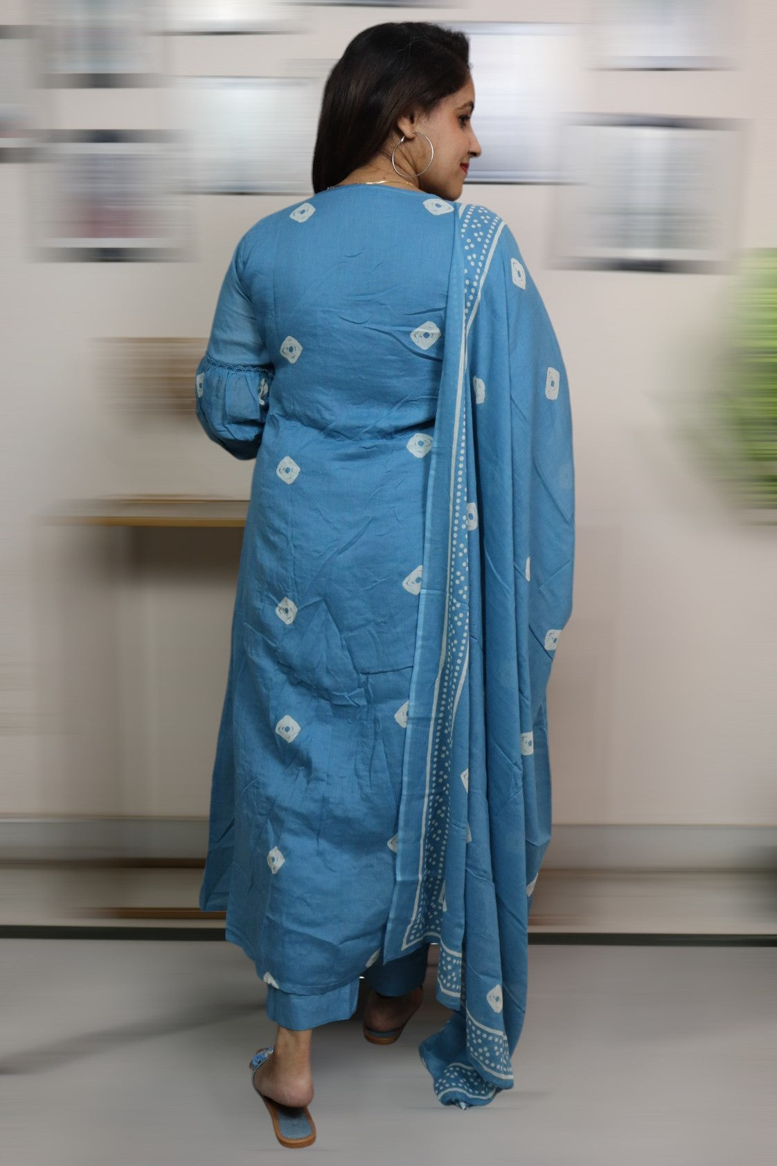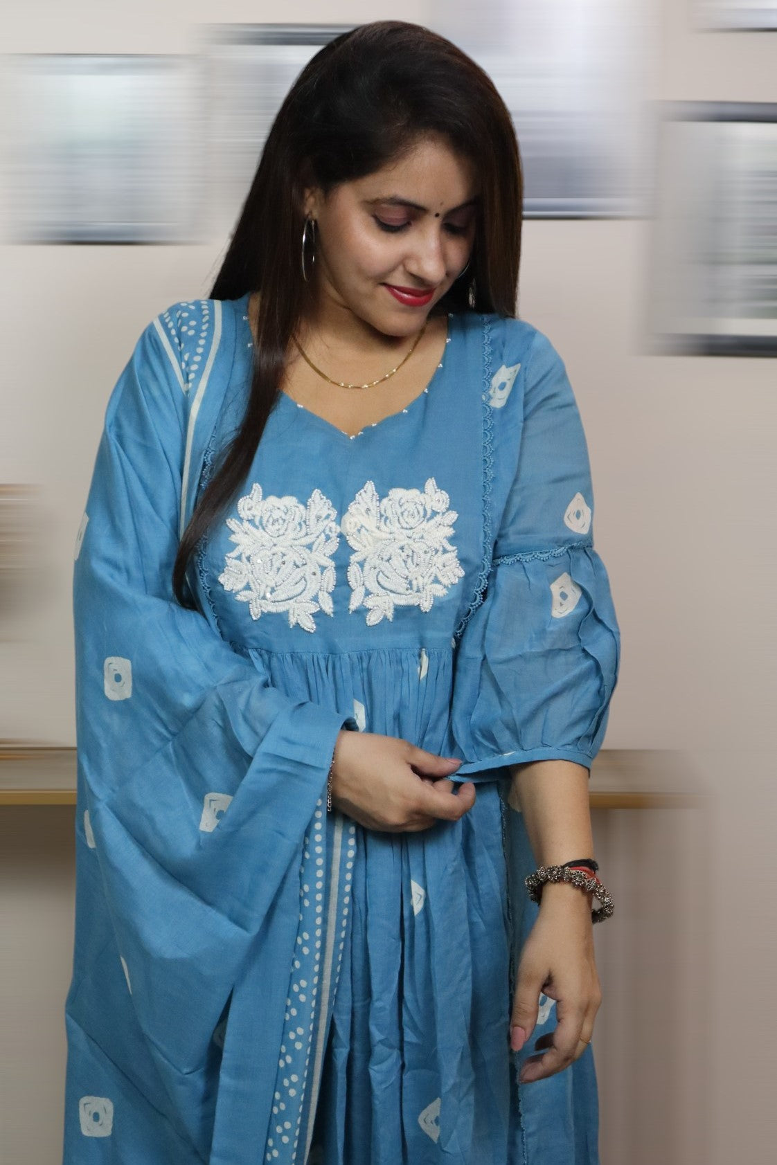 ISHI 875 Beautiful Designer Blue Color Mal Cotton Embroided 3 Pcs Suit