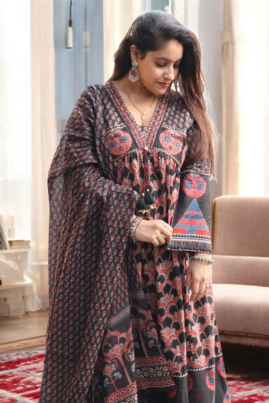 ISHI 935 Beautiful Designer Premium Multi color Cotton Anarkali 3 Pcs Suit