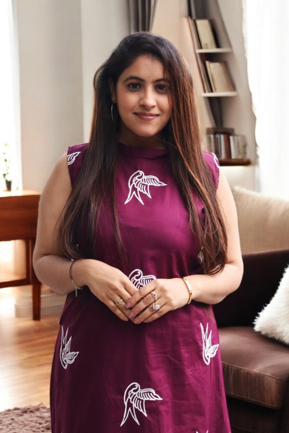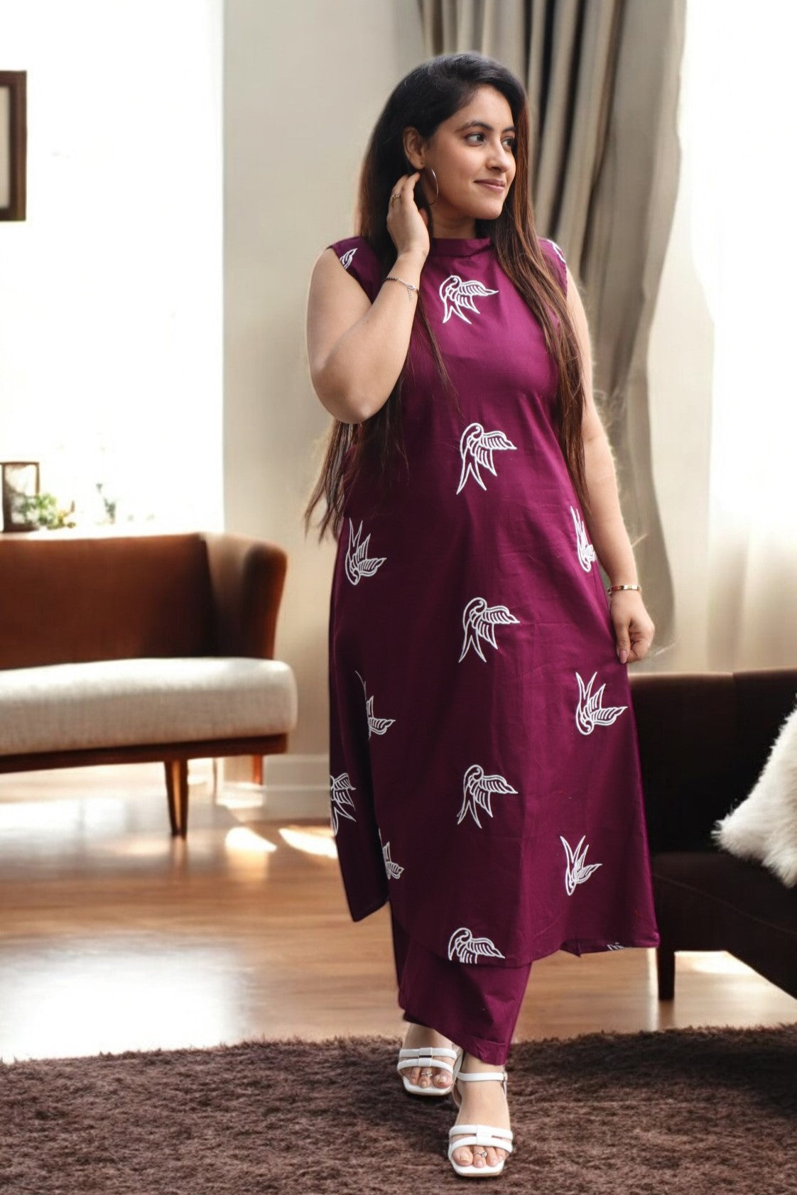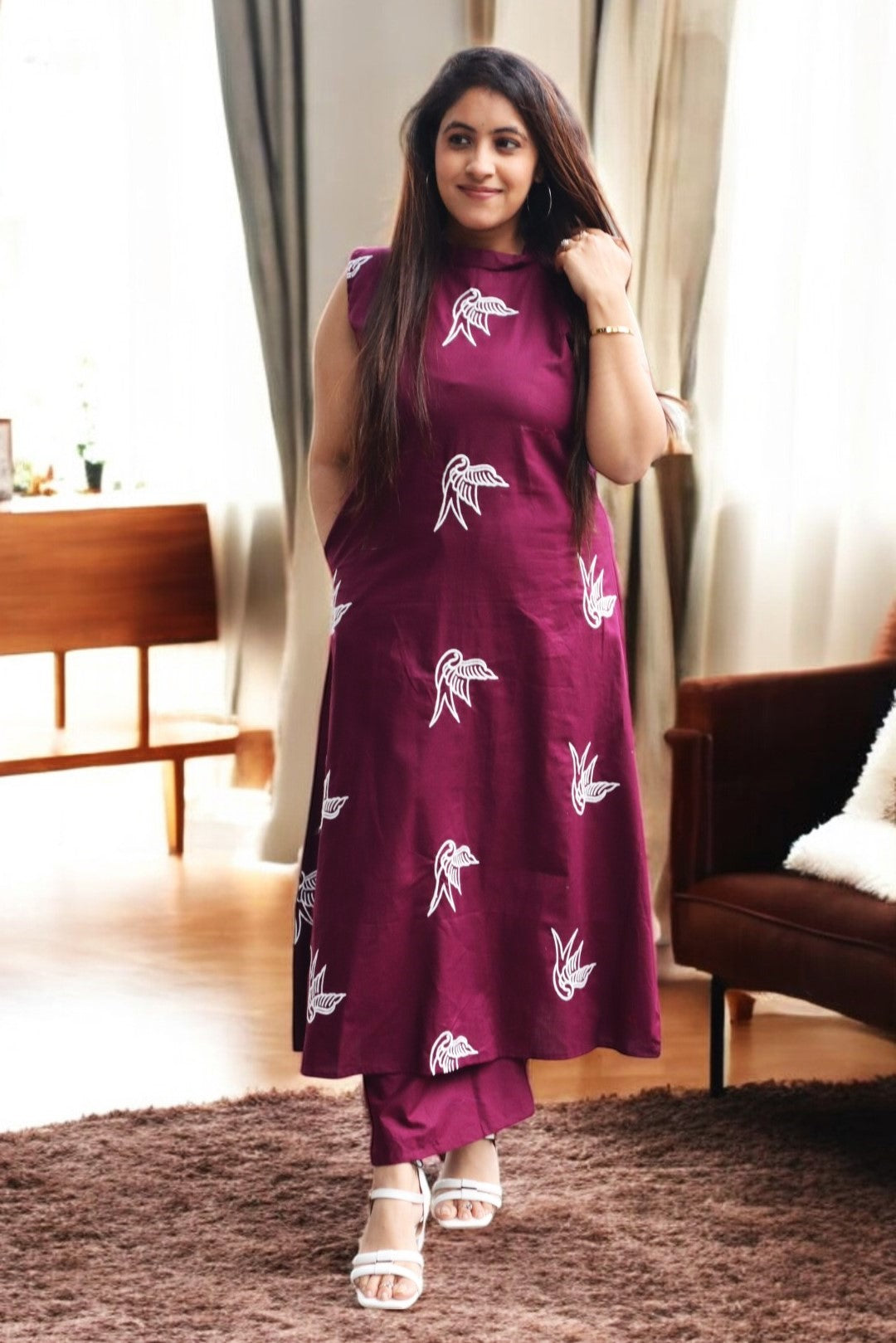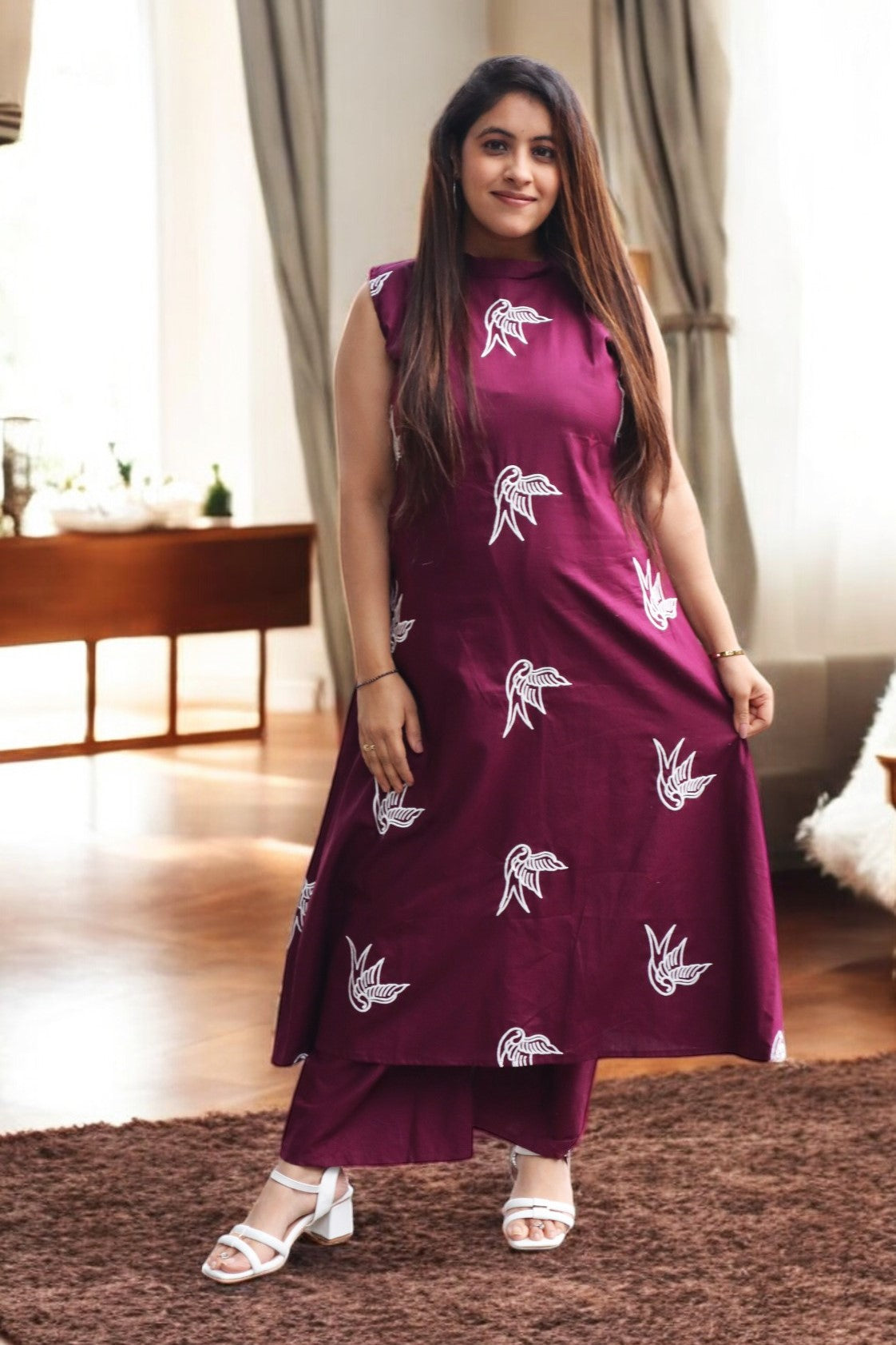 ISHI 960 Beautiful Wine Color Cambric Cotton Embroided 2 Pcs Suit