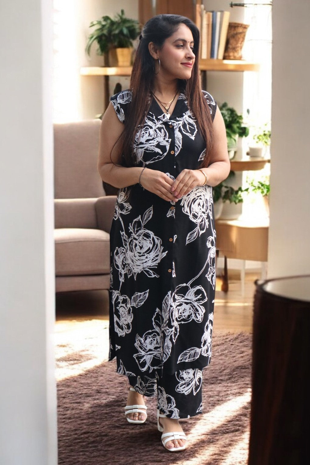 ISHI 968 Beautiful Black Color Rayon Designer Printed 2 Pcs Set