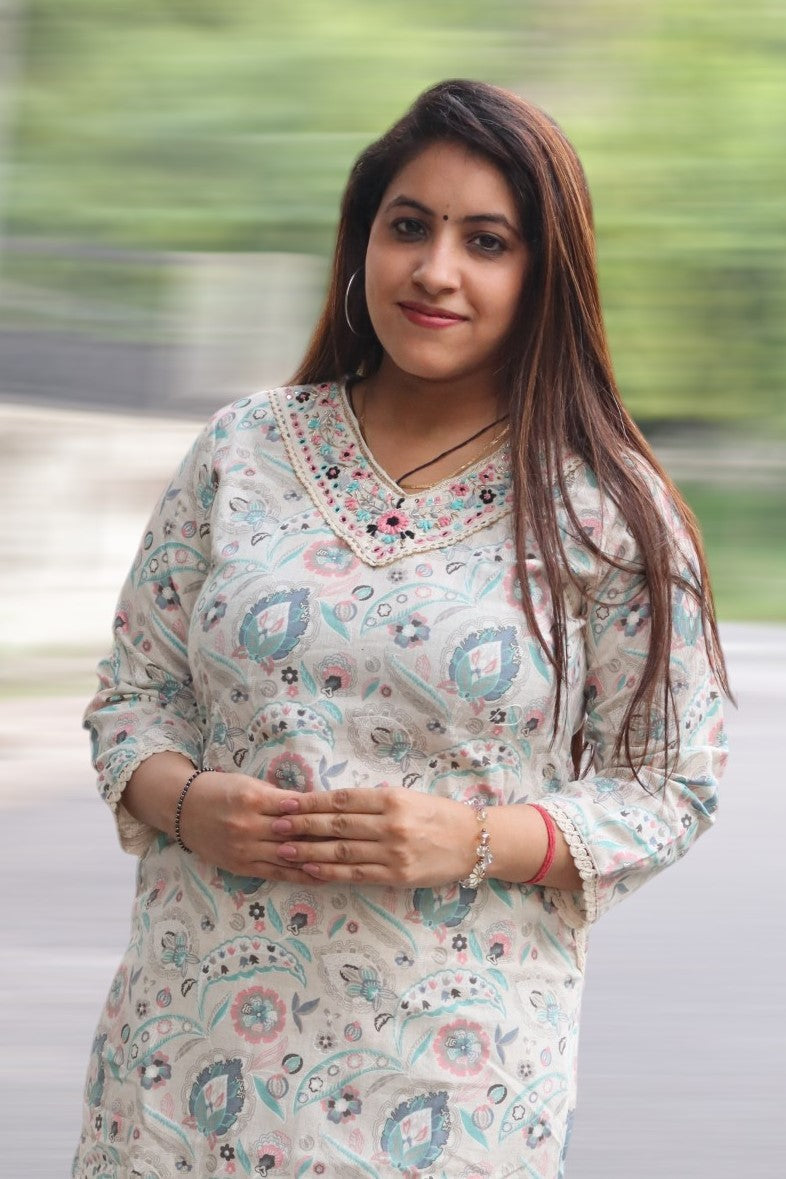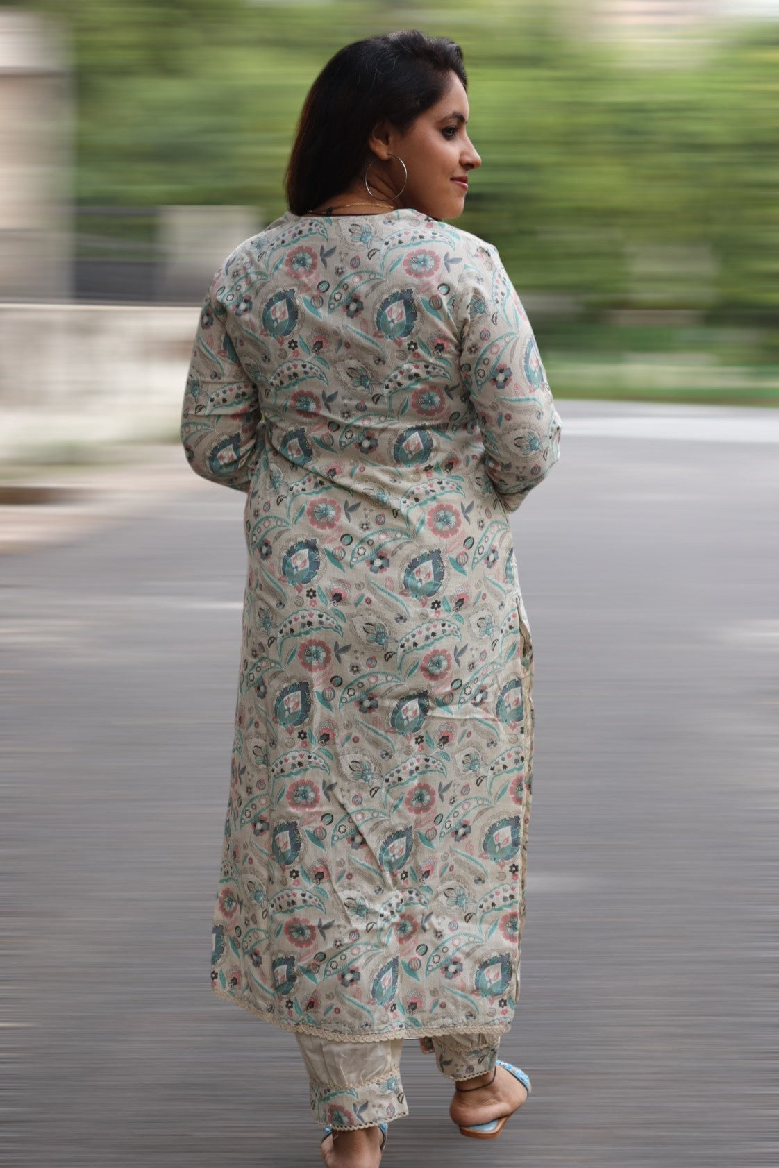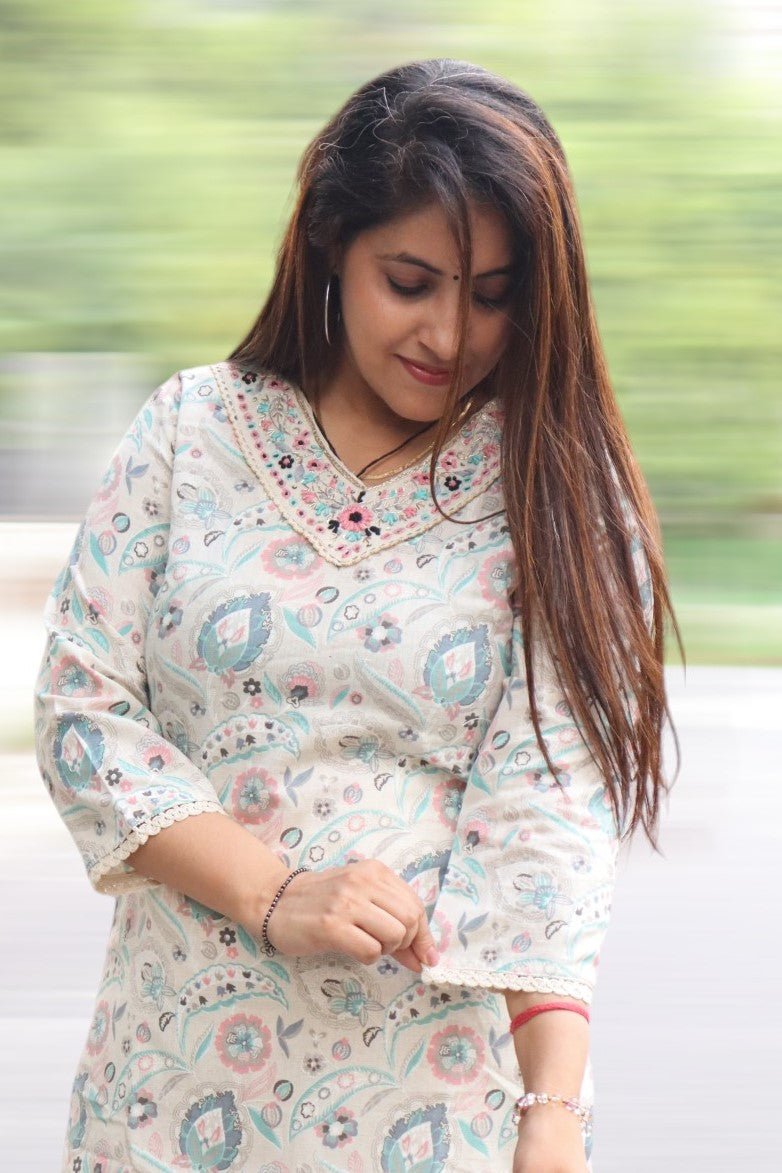ISHI666 Beautiful Designer Off White Color Floral Cotton 2 Pcs Suit
