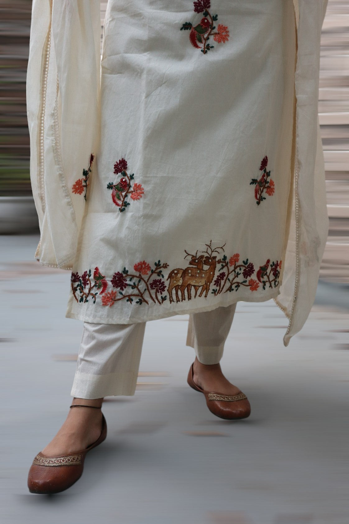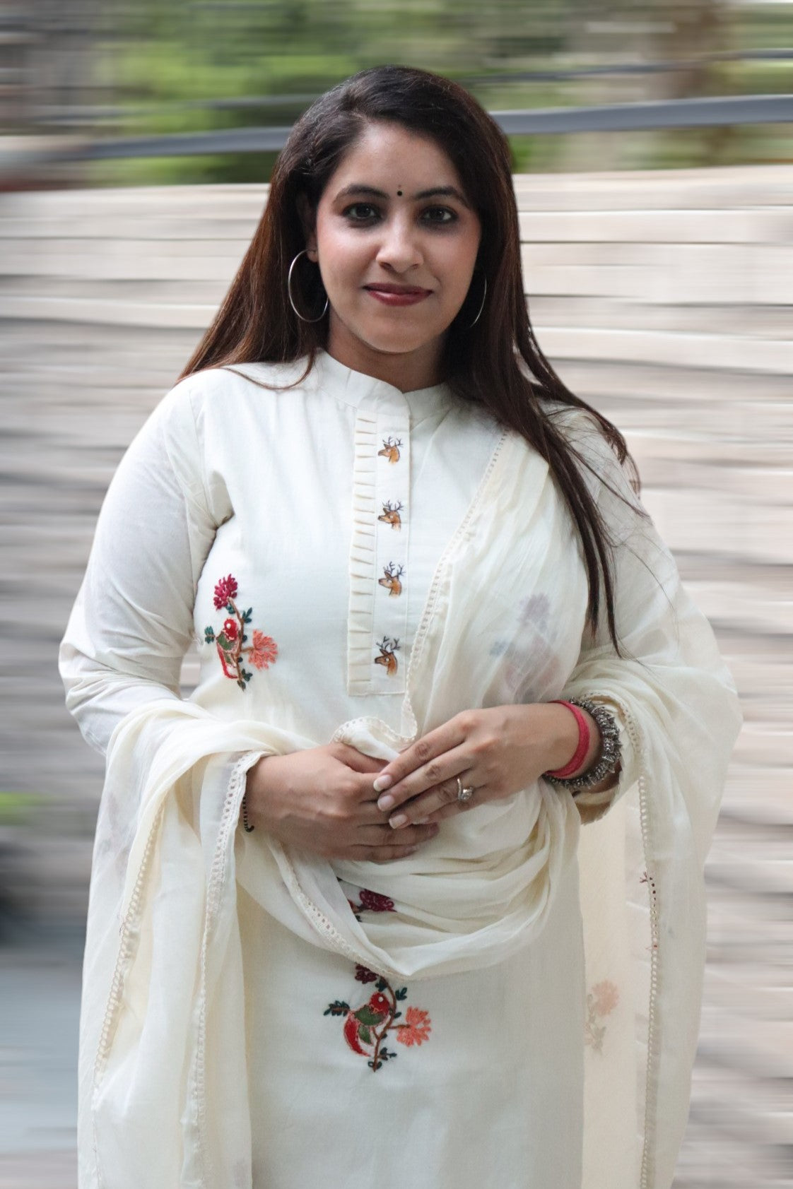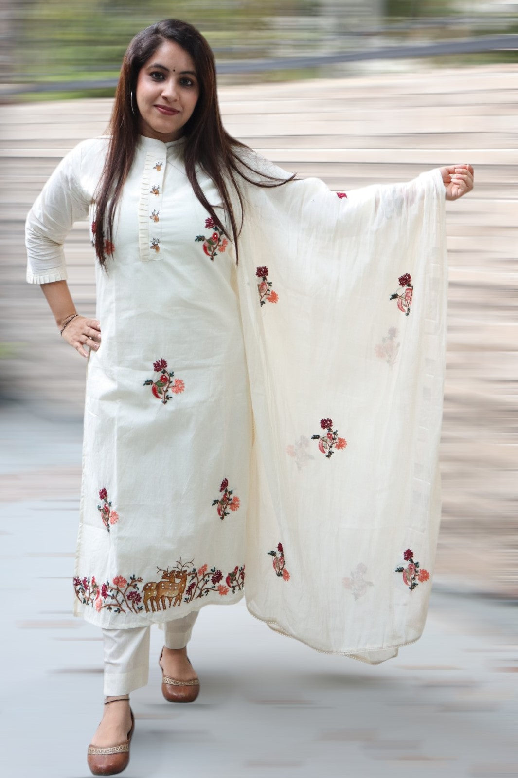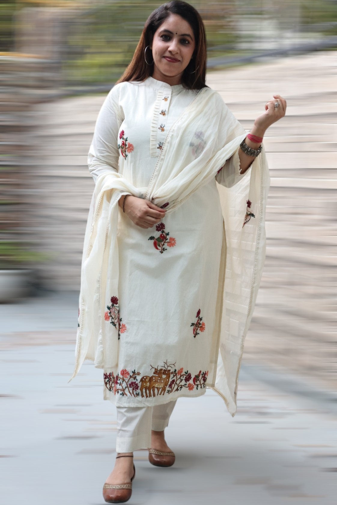 ISHI738 Premium Designer Off White Handwork Cotton 3 Pcs Suit