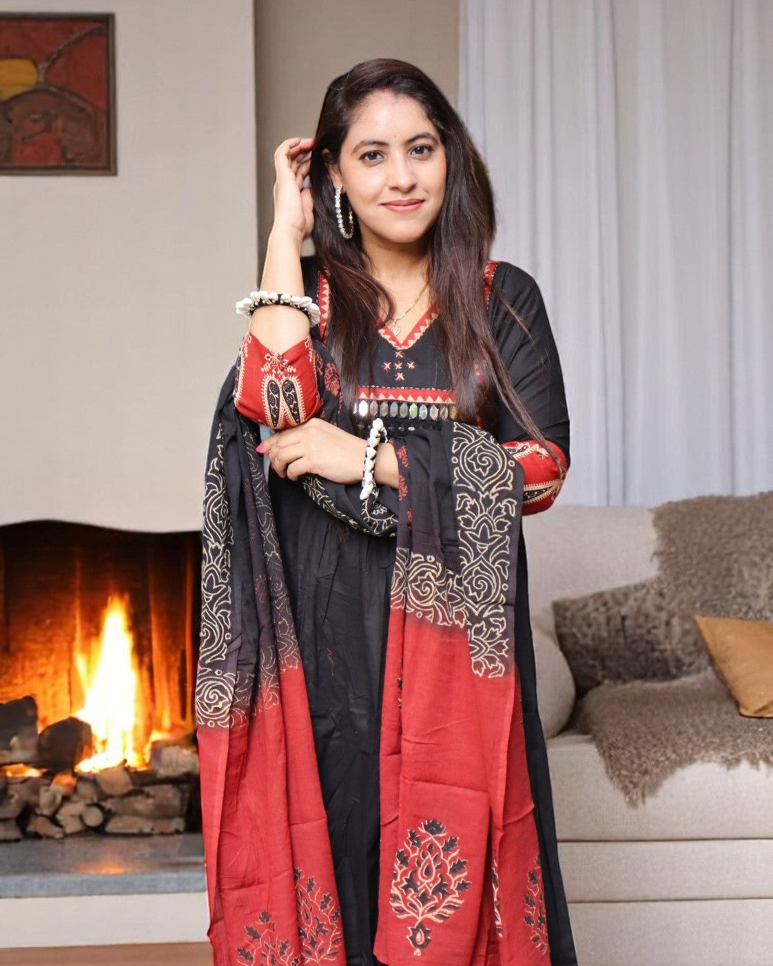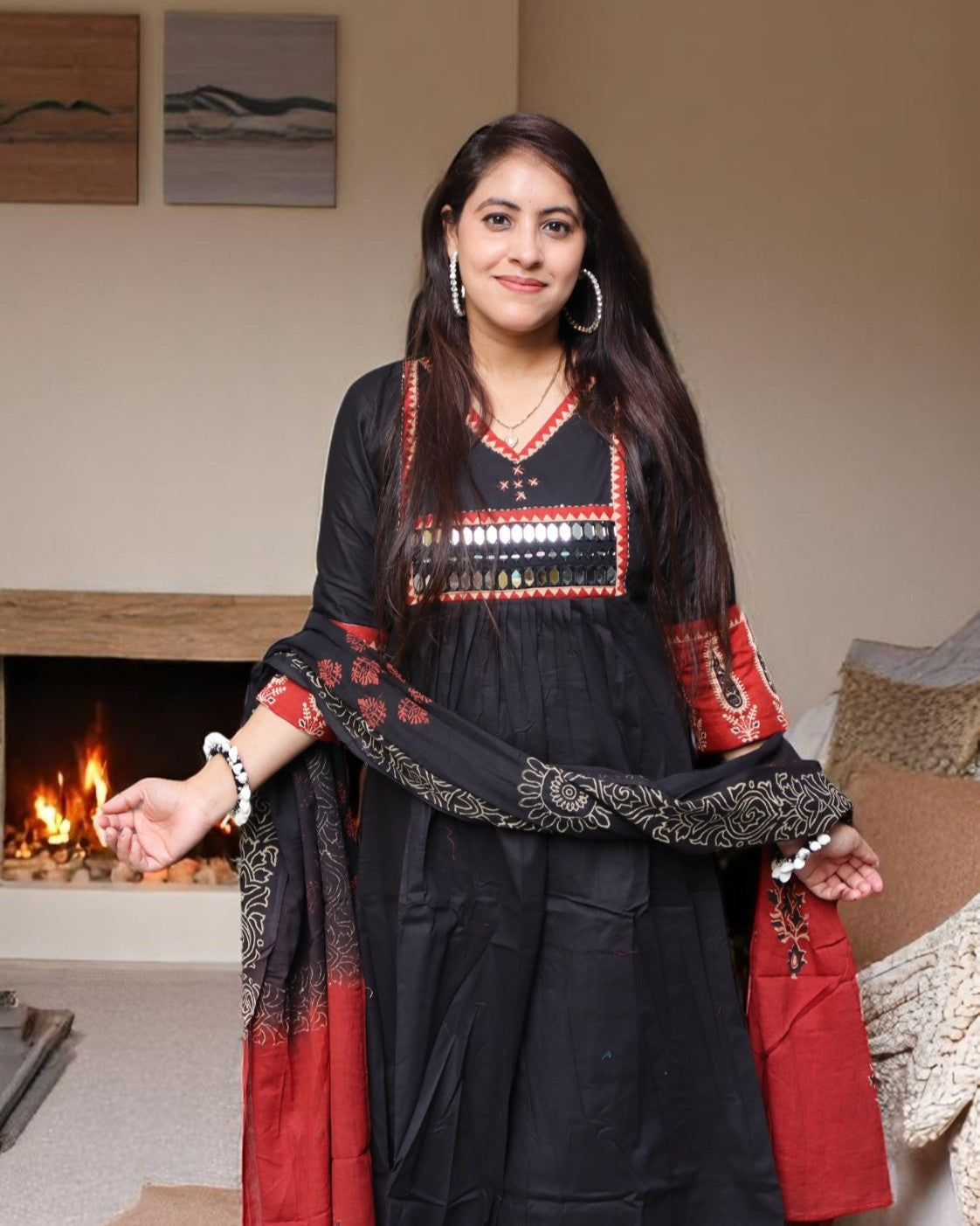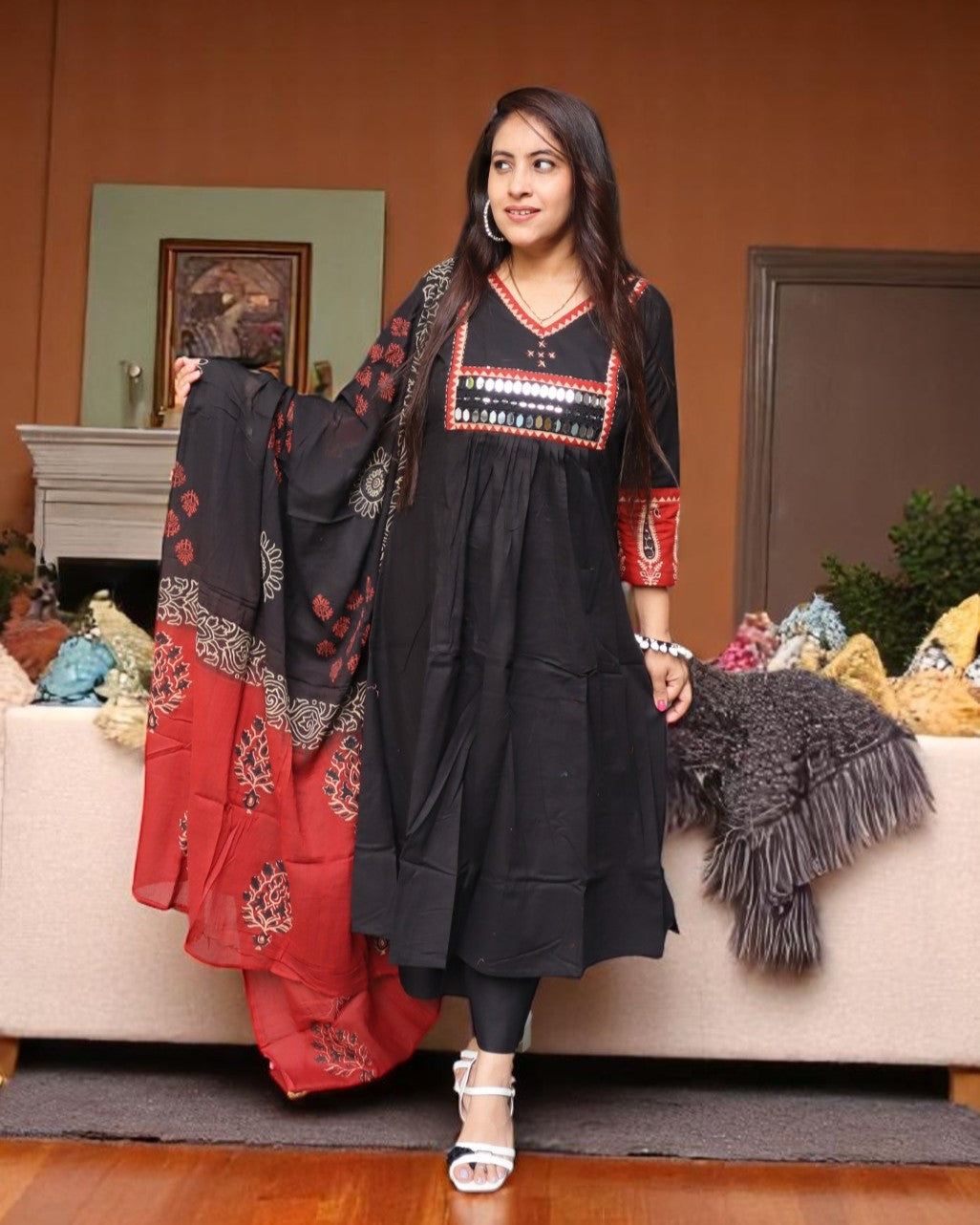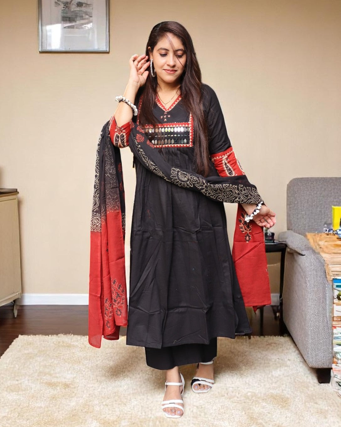 SDA0107 Designer Black Color Cotton Gamthi Work 3 Pcs Set
