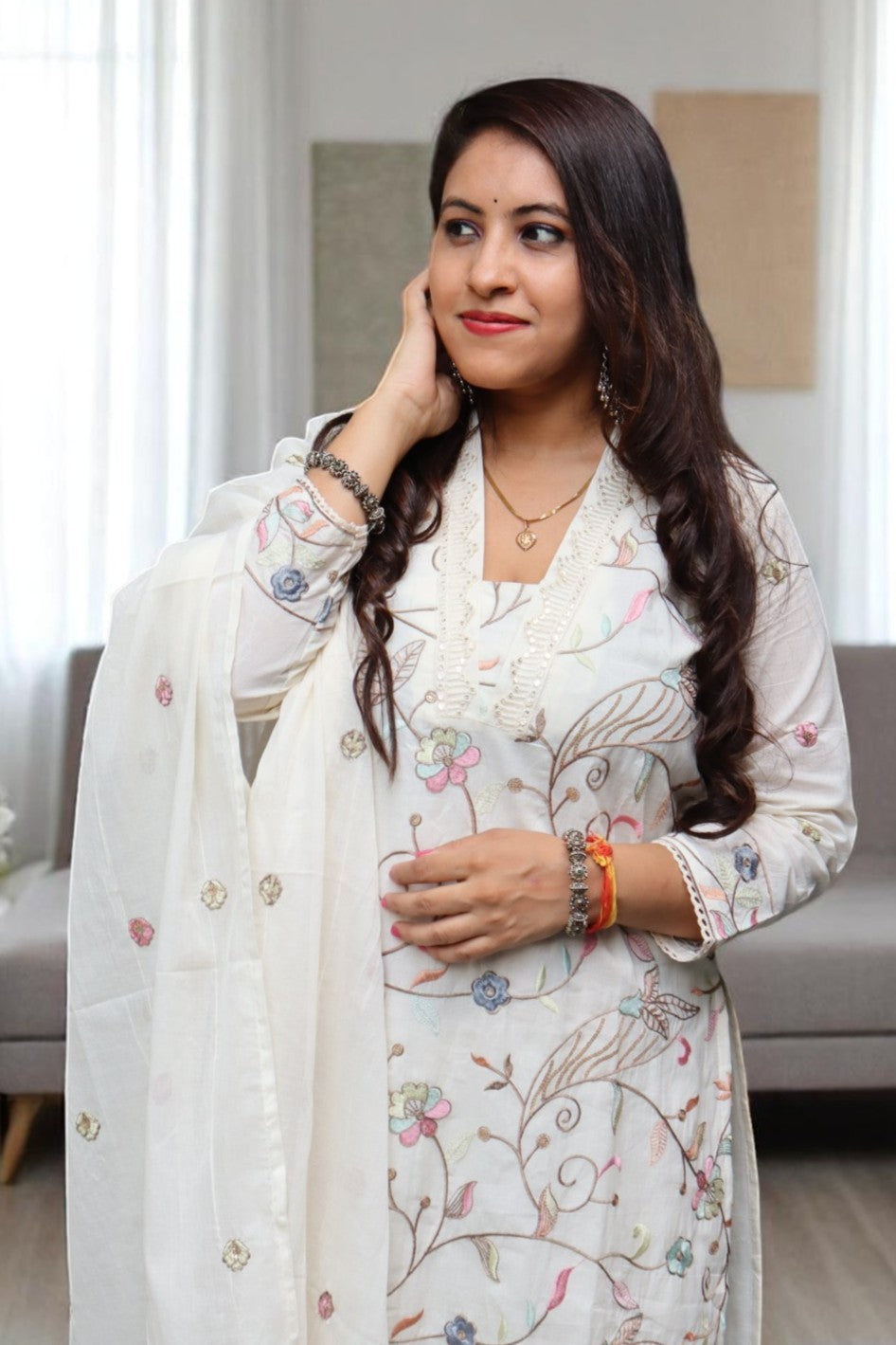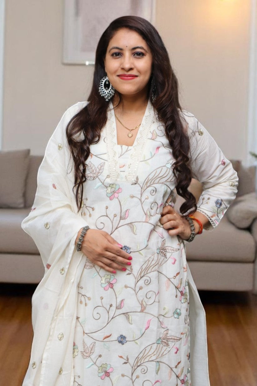 SCA098 Designer Off White Color Khadi Cotton Full Embroidery Work 3 Pcs Suit