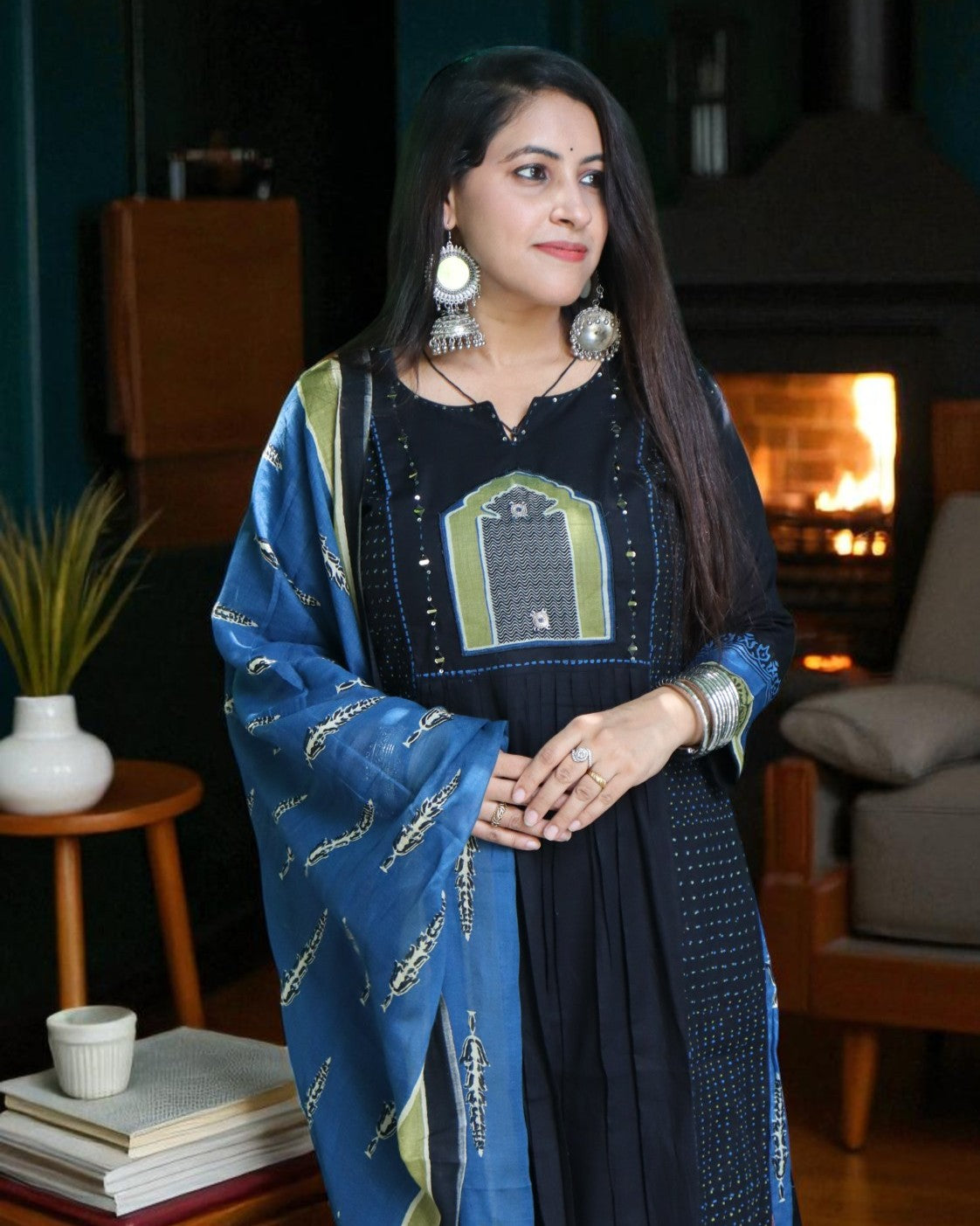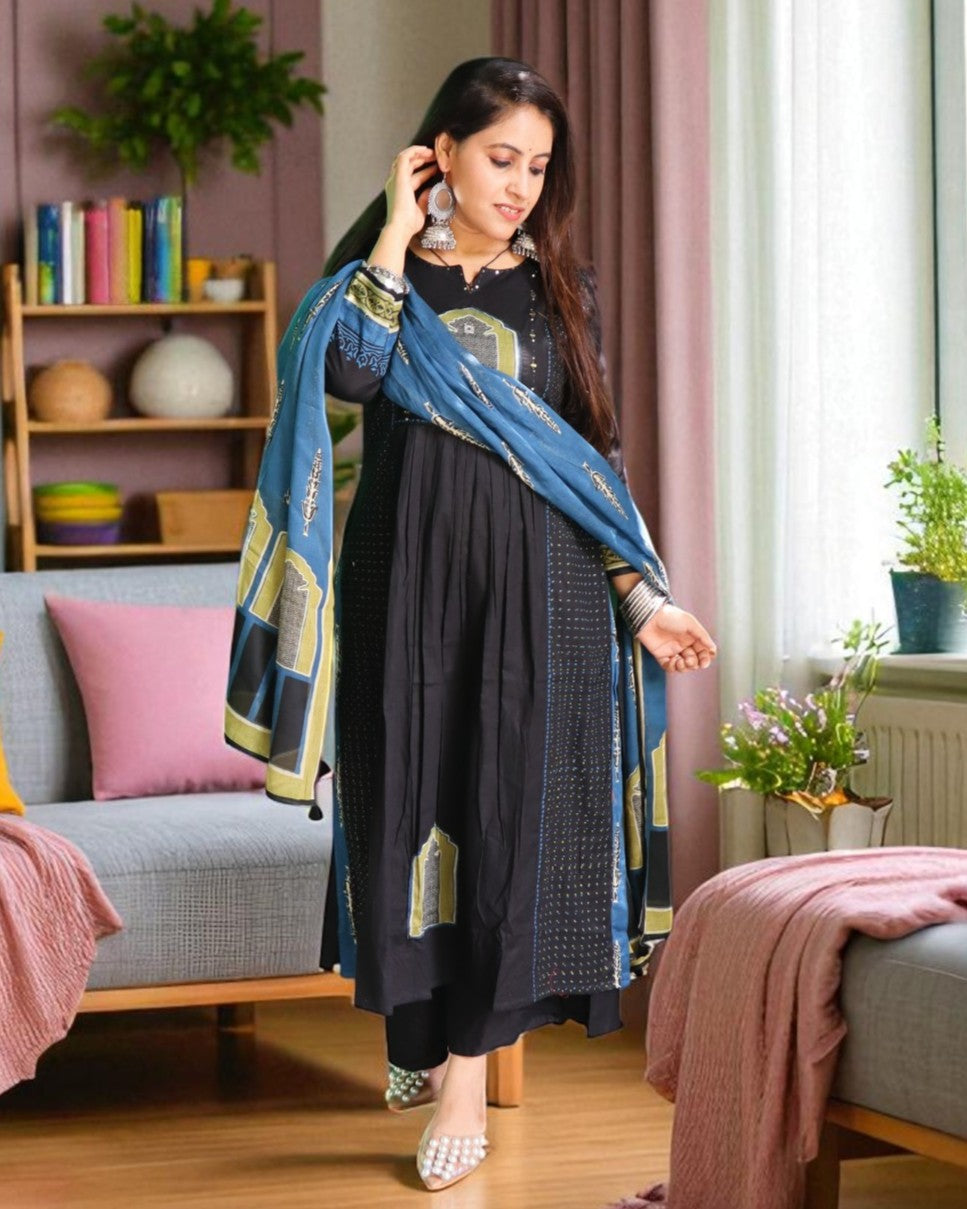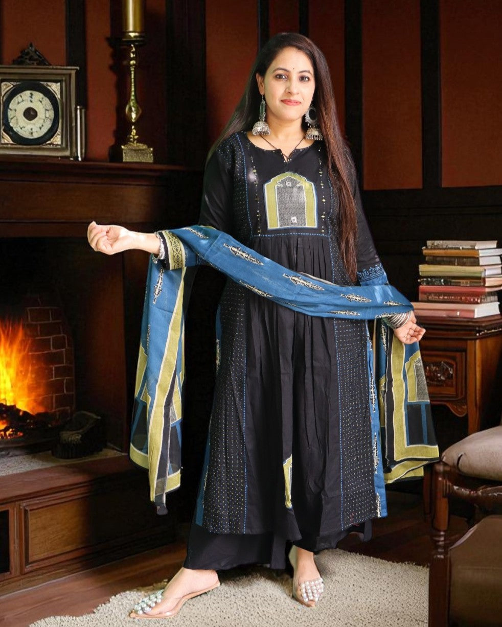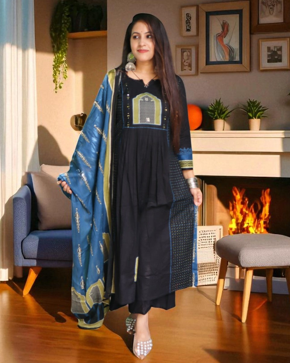 SCA139 Designer Cotton Black Color Embroidery Work 3 Pcs Set