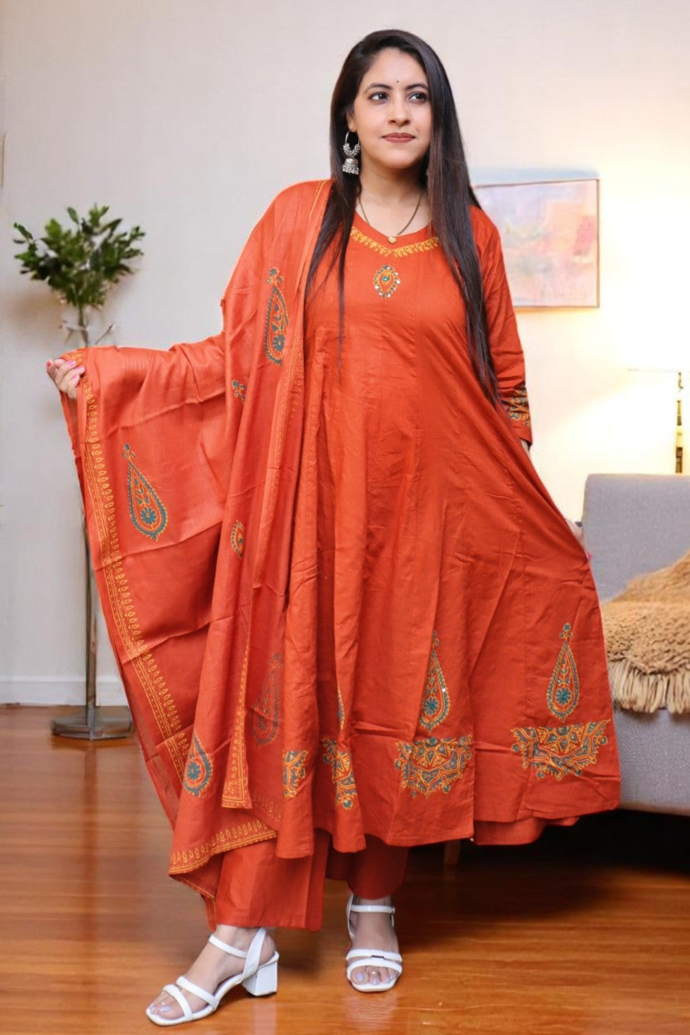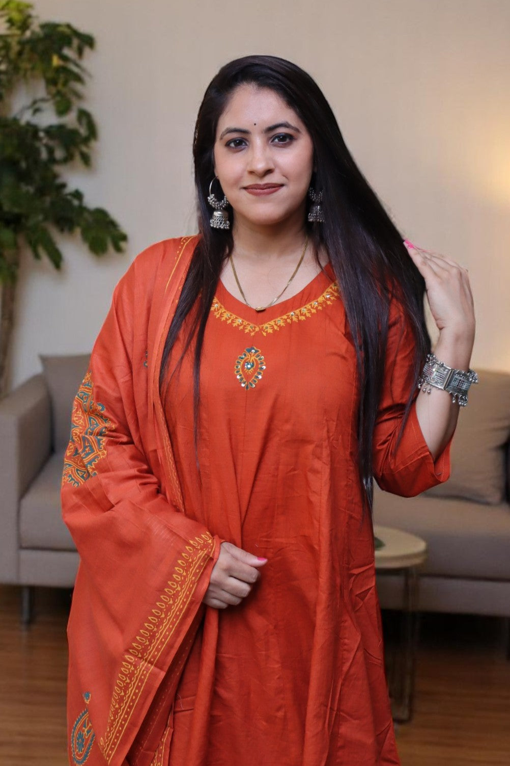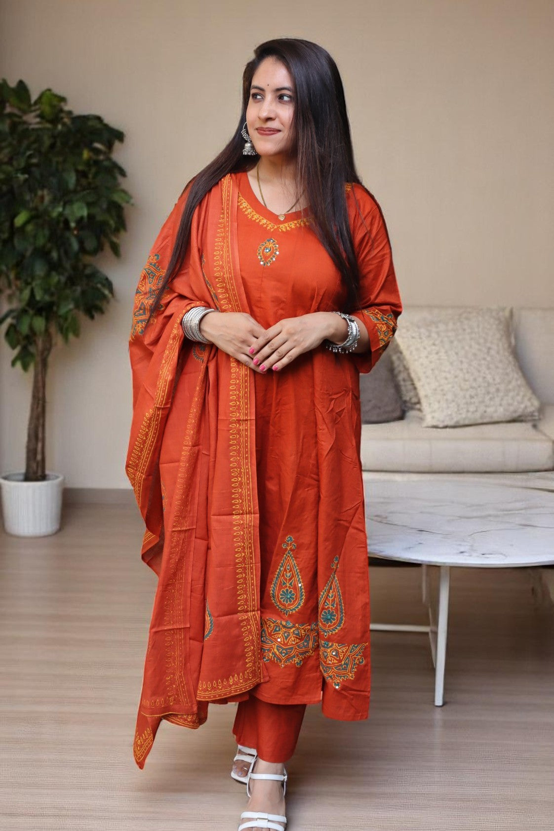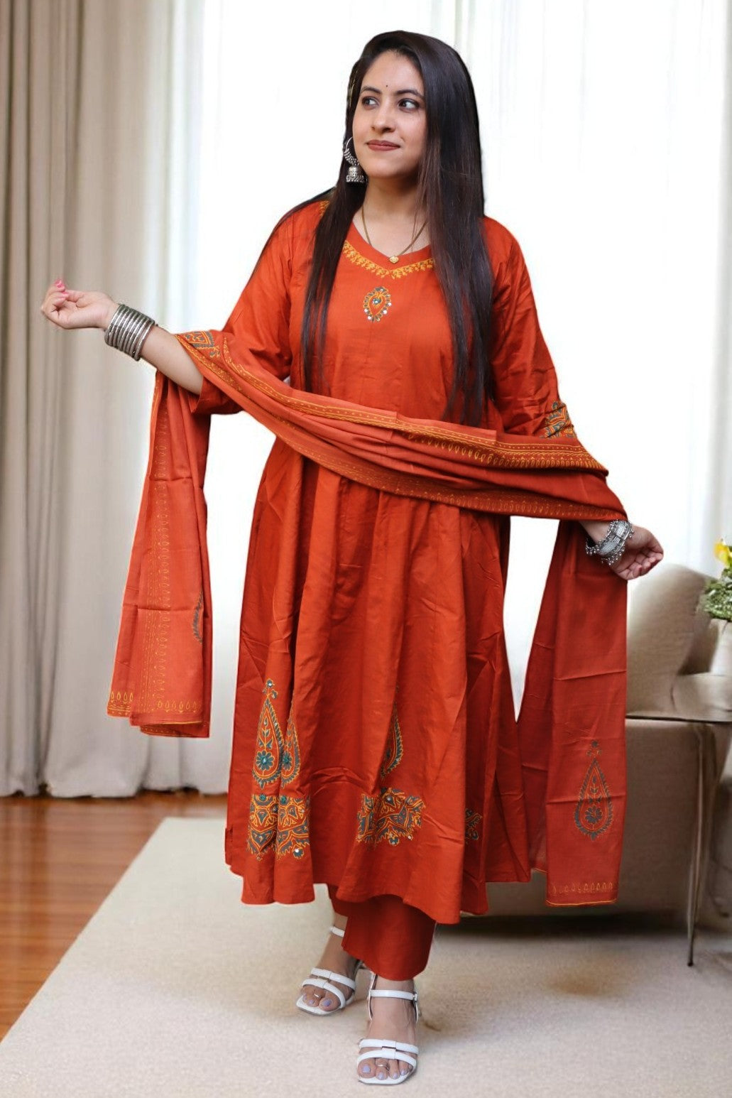 SCB0106 Beautiful Rust Color Pure Cotton 3 Pcs Suit