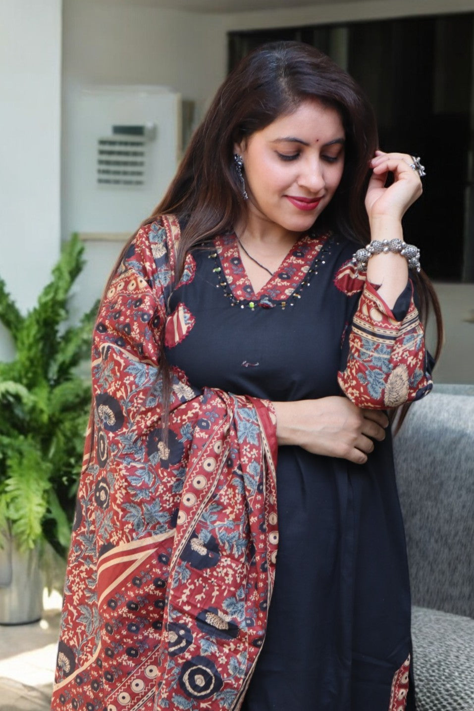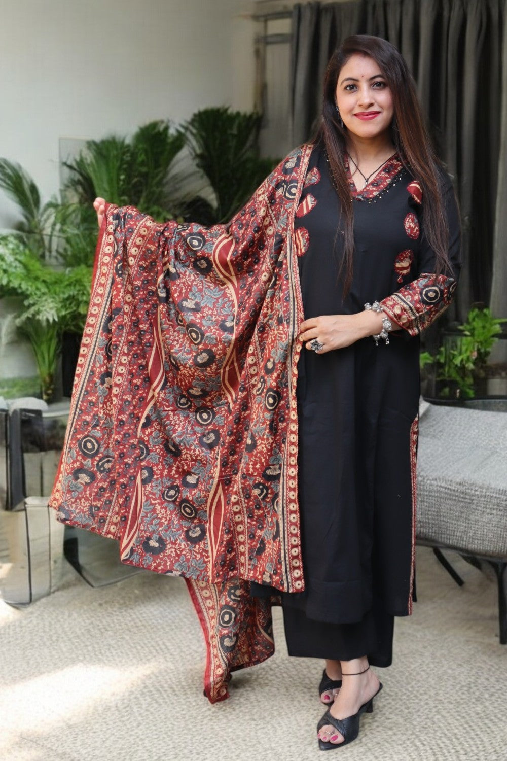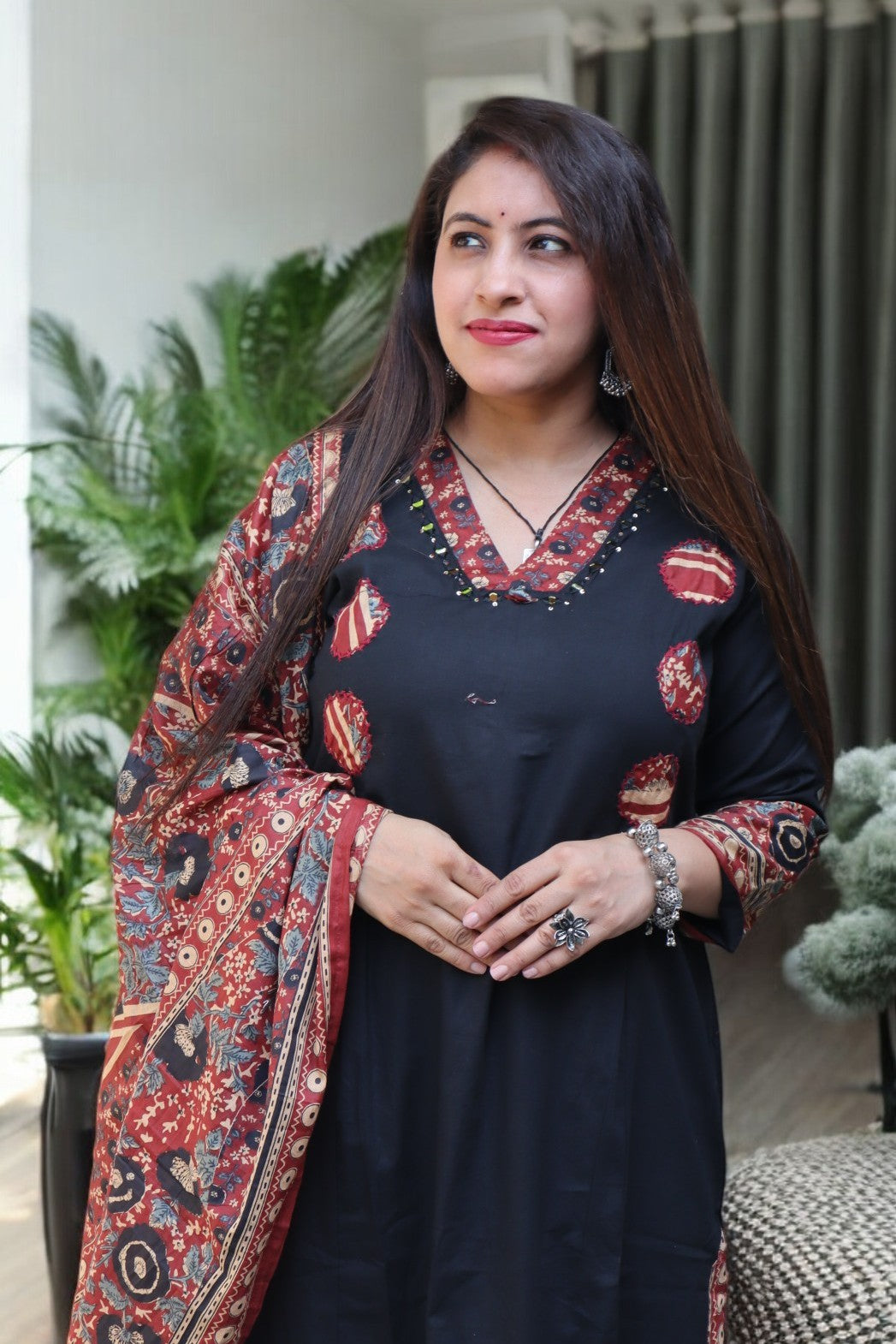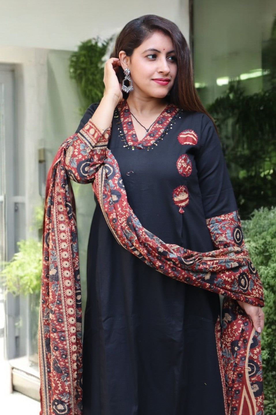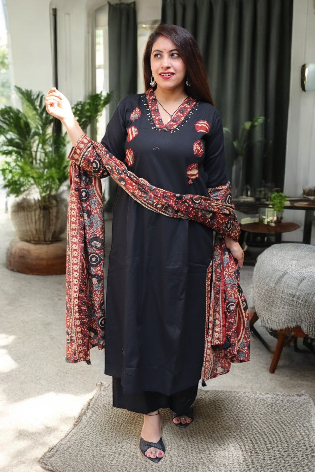 SCD076 Beautiful Black Color Gujrati Style Cotton Applique Work 3 Pcs Set
