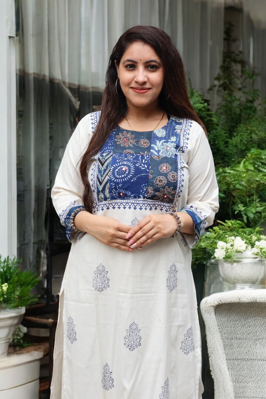 SDC018 Designer Off White Color Khadi Cotton Gamthi Work 2 Pcs Set