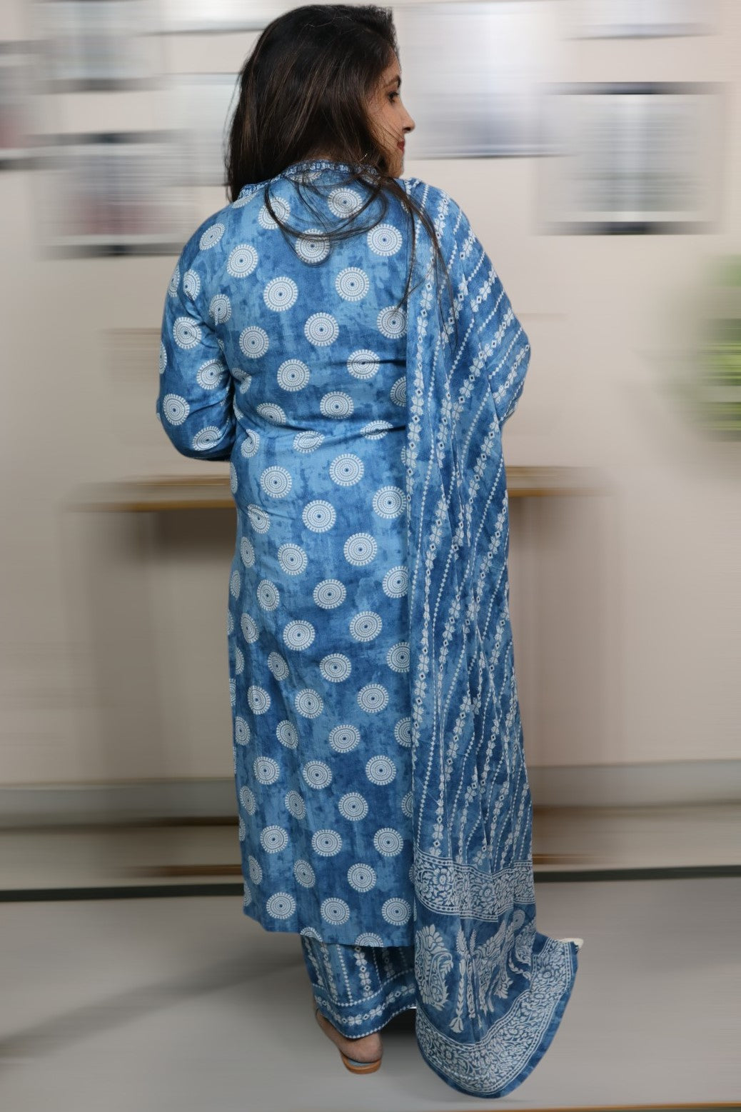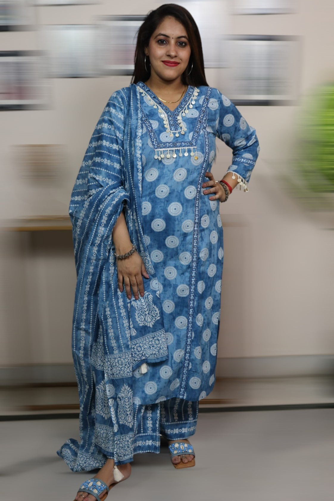 ISHI 881 Beautiful Sky Blue Color Cotton Designer Straight 3 Pcs Suit
