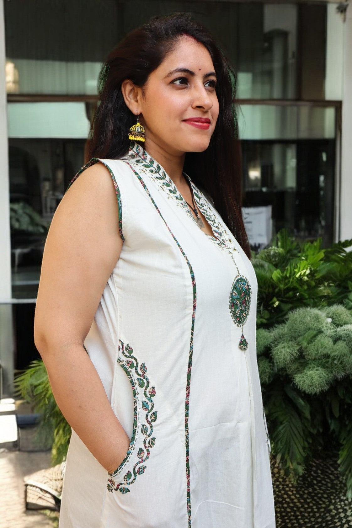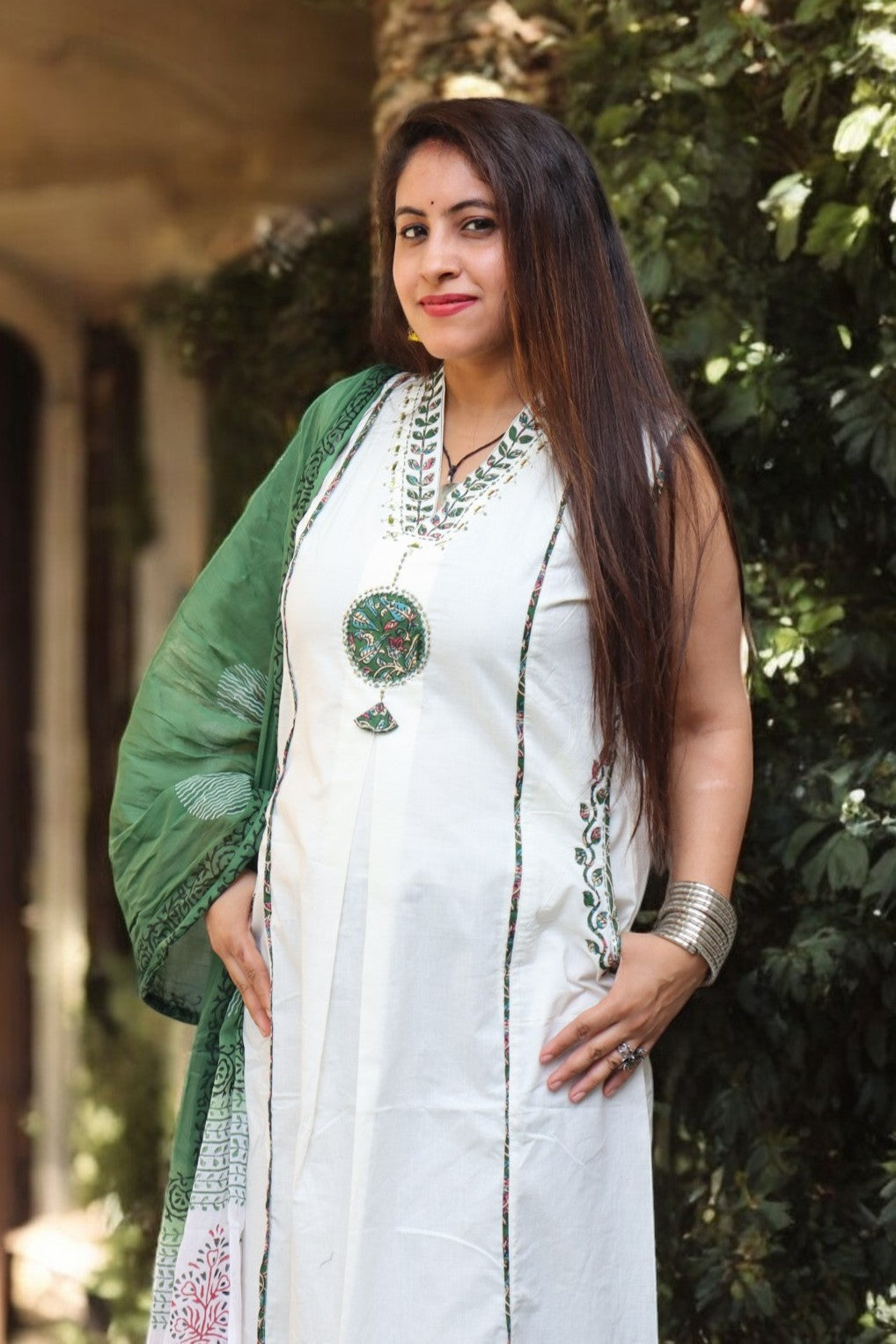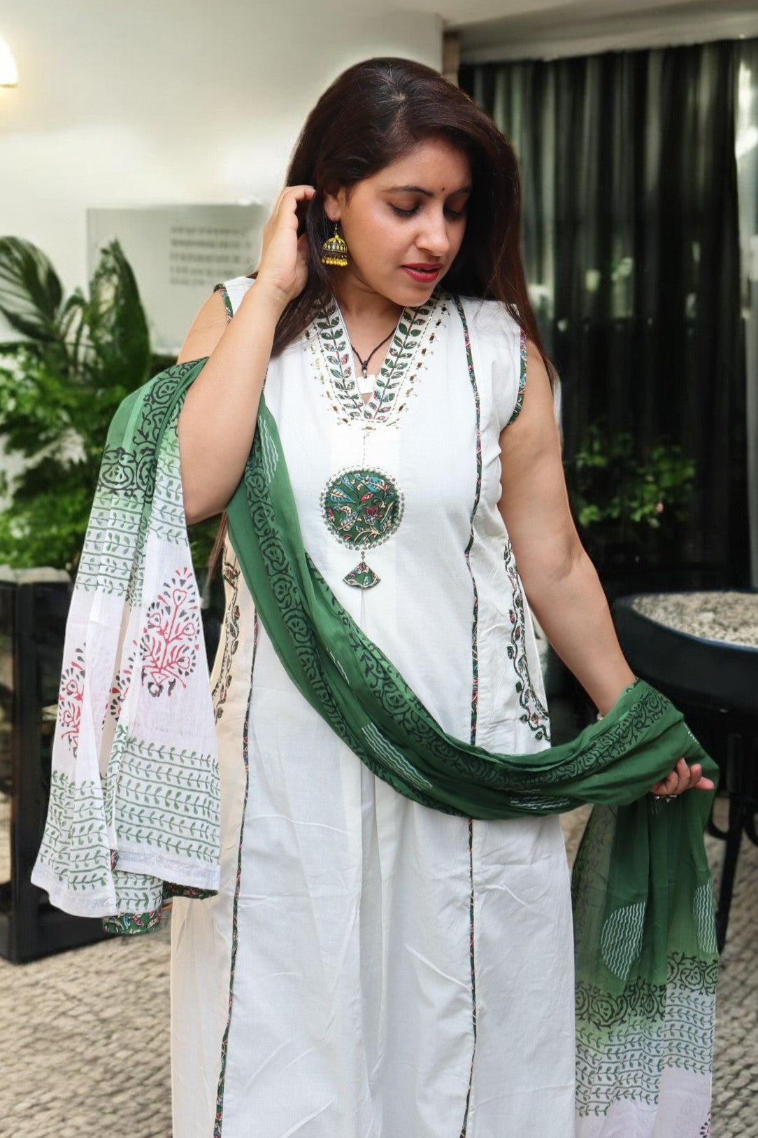SCD074 Beautiful White Color Gujrati Style Cotton Applique Work 3 Pcs Set